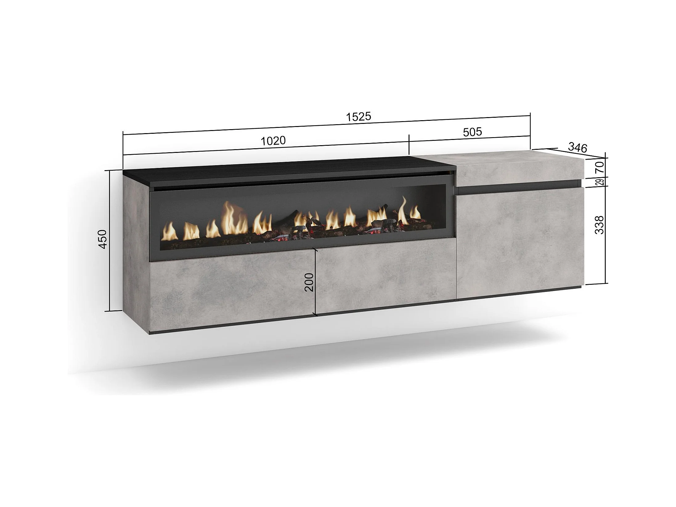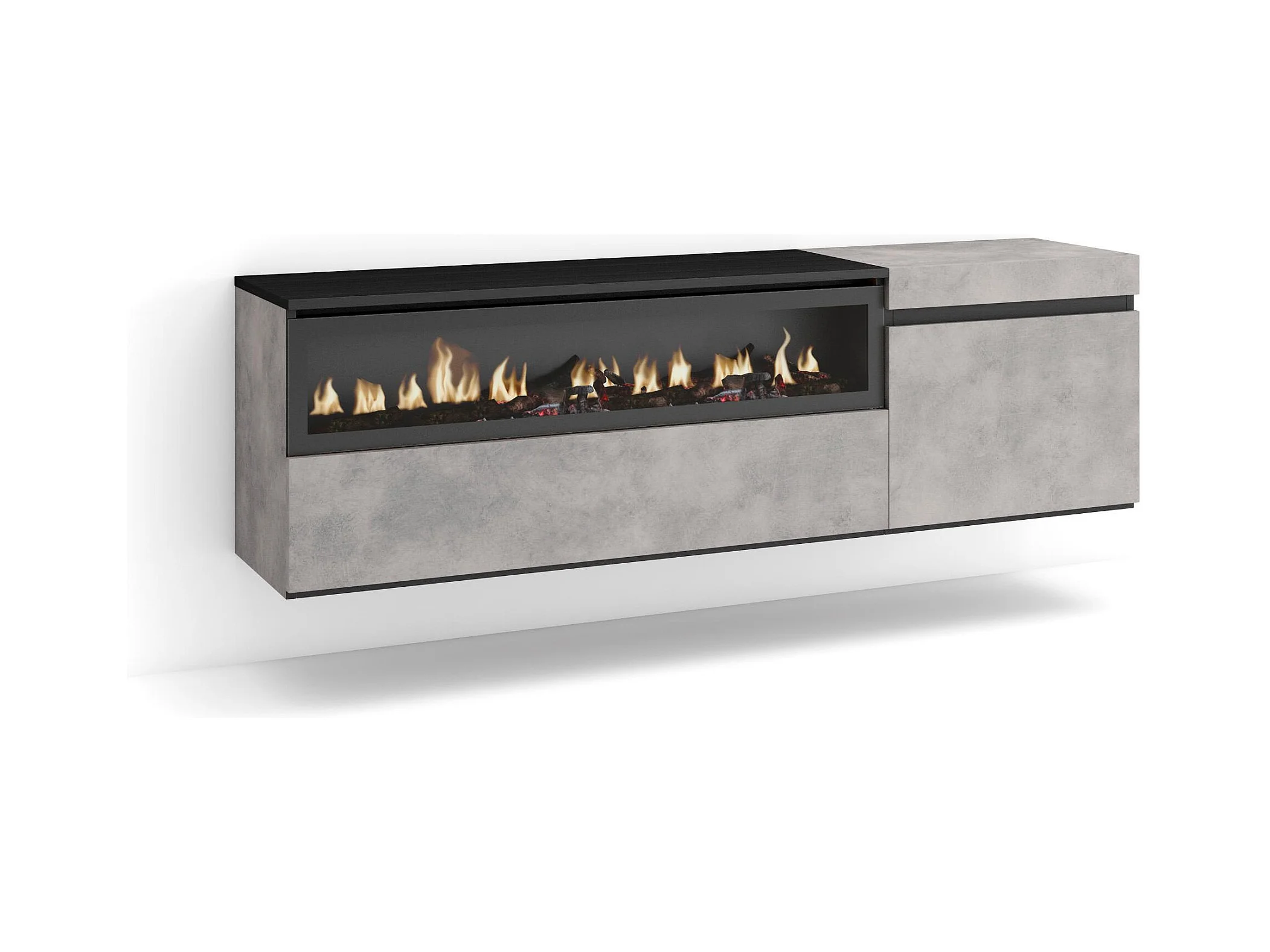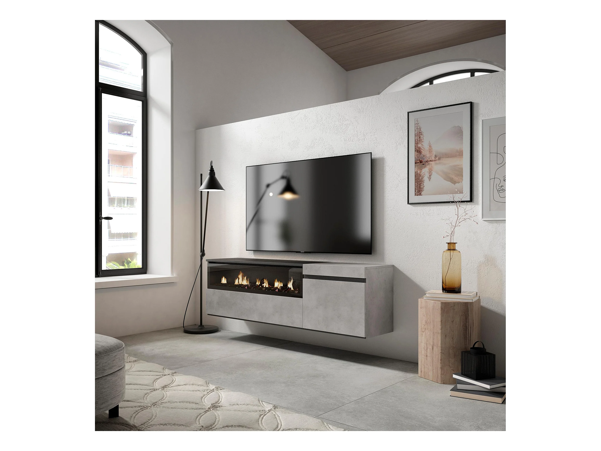 Mobile TV Soggiorno, 150x35x45cm, Per TV fino a 65", Camino elettrico, Sospeso, da appendere, Cemento