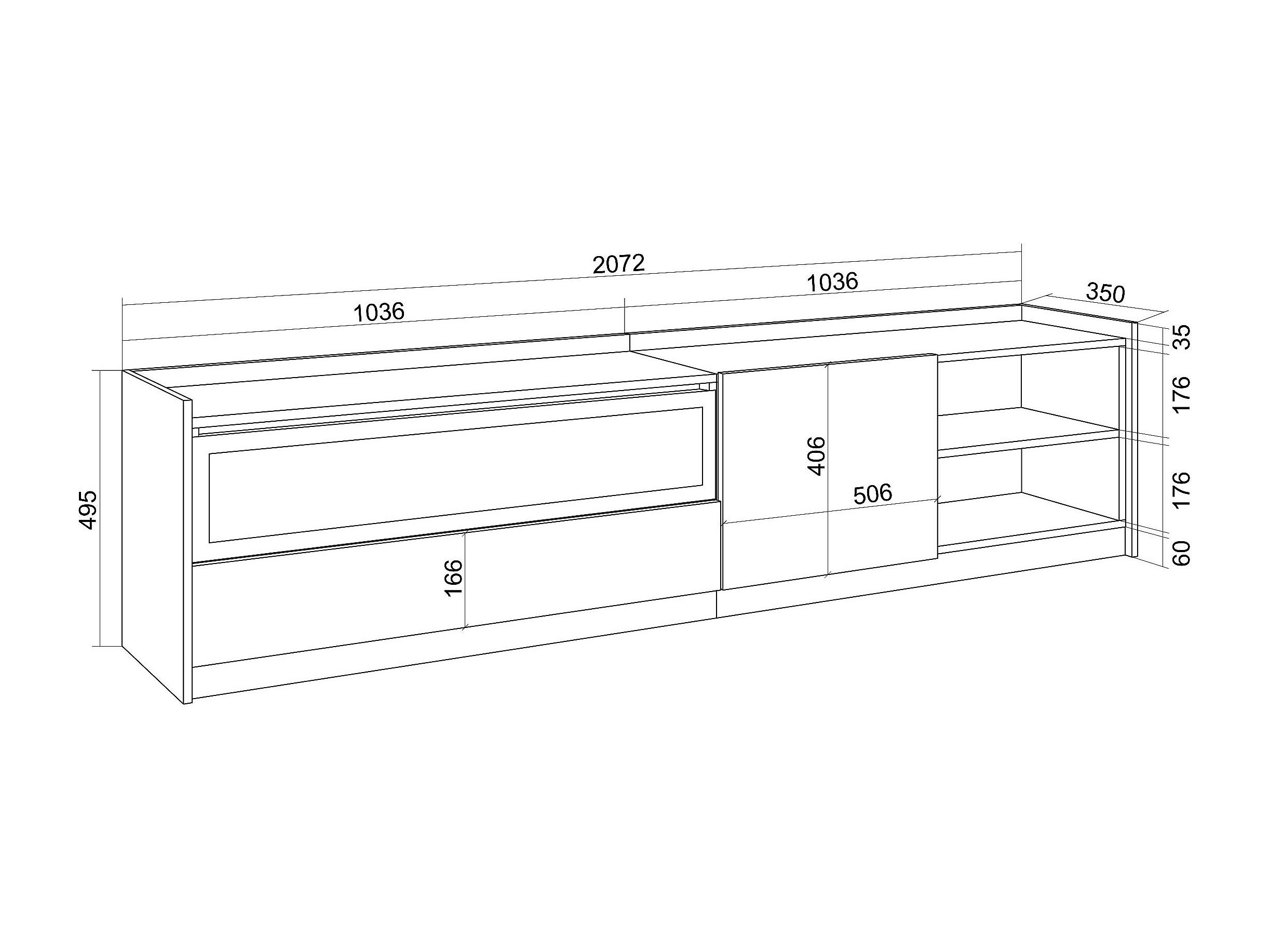 Mobile TV Soggiorno, 207x50x37 cm, Per TV fino a 80", Camino elettrico, Rovere scuro e Nero
