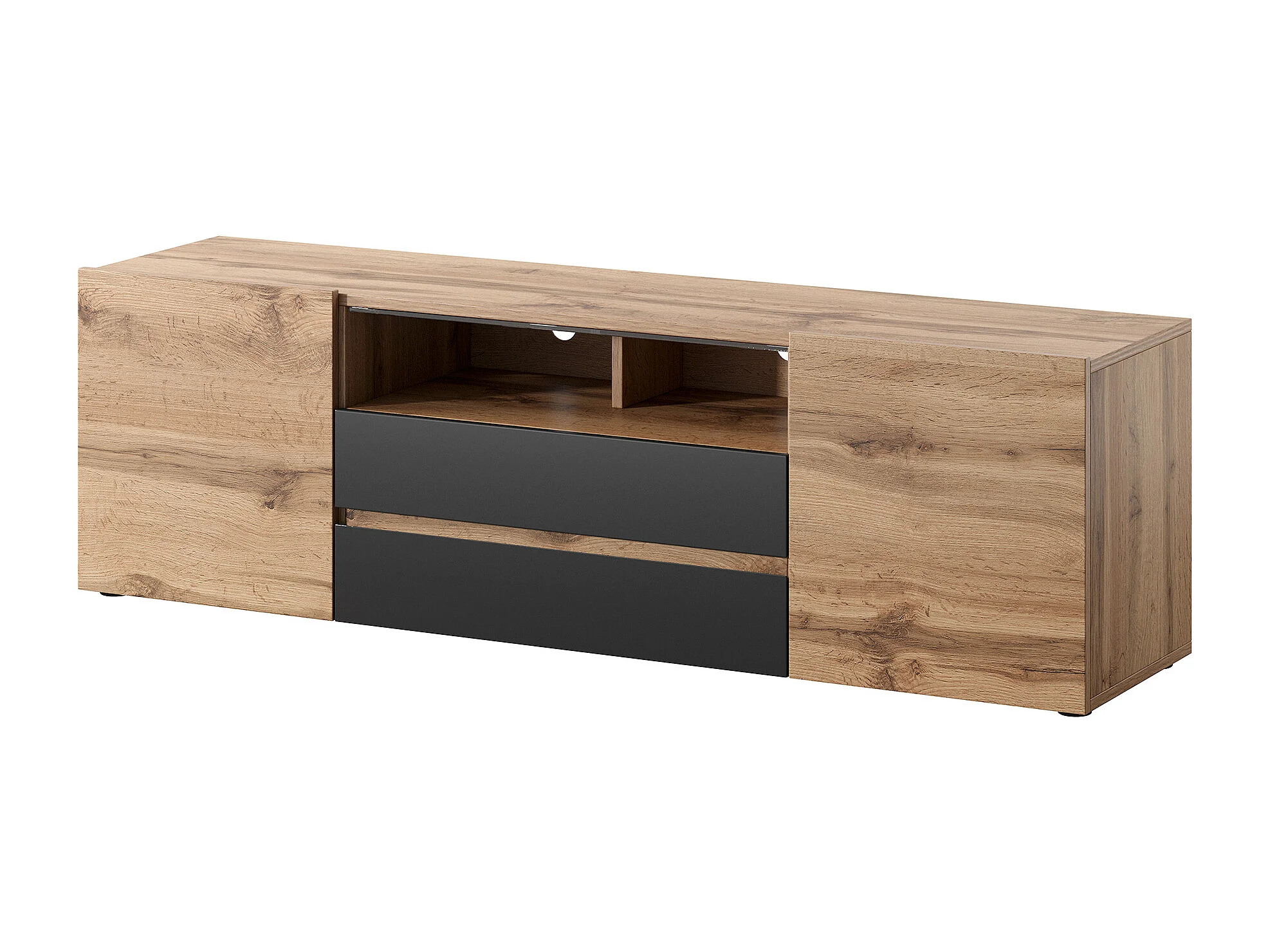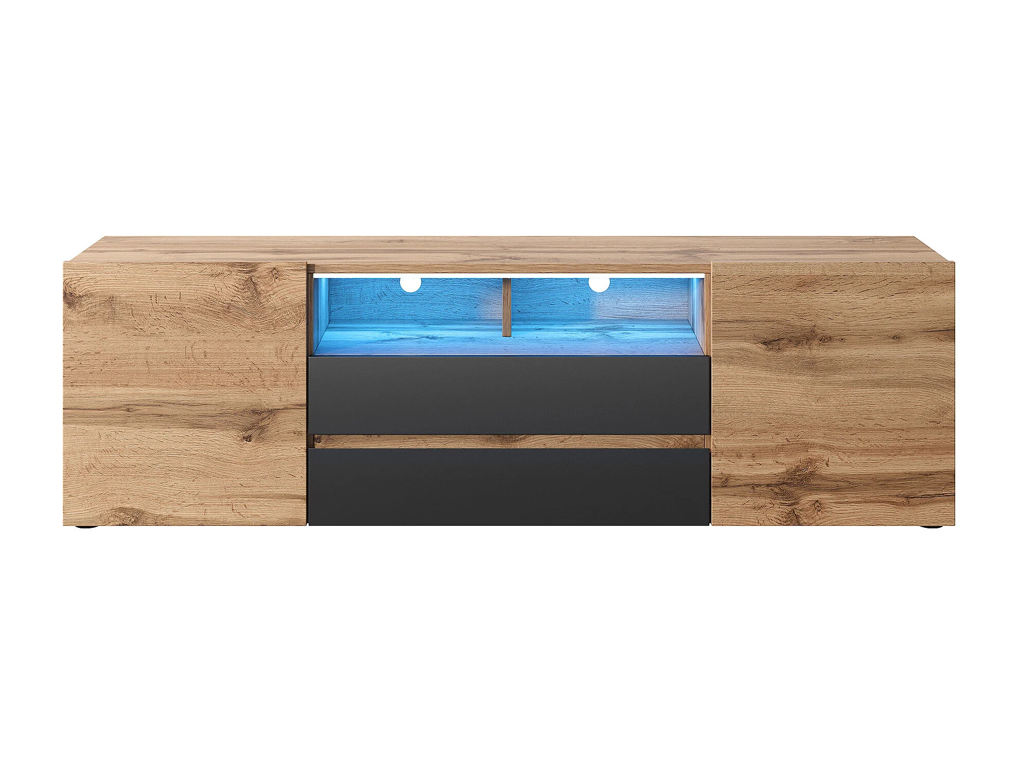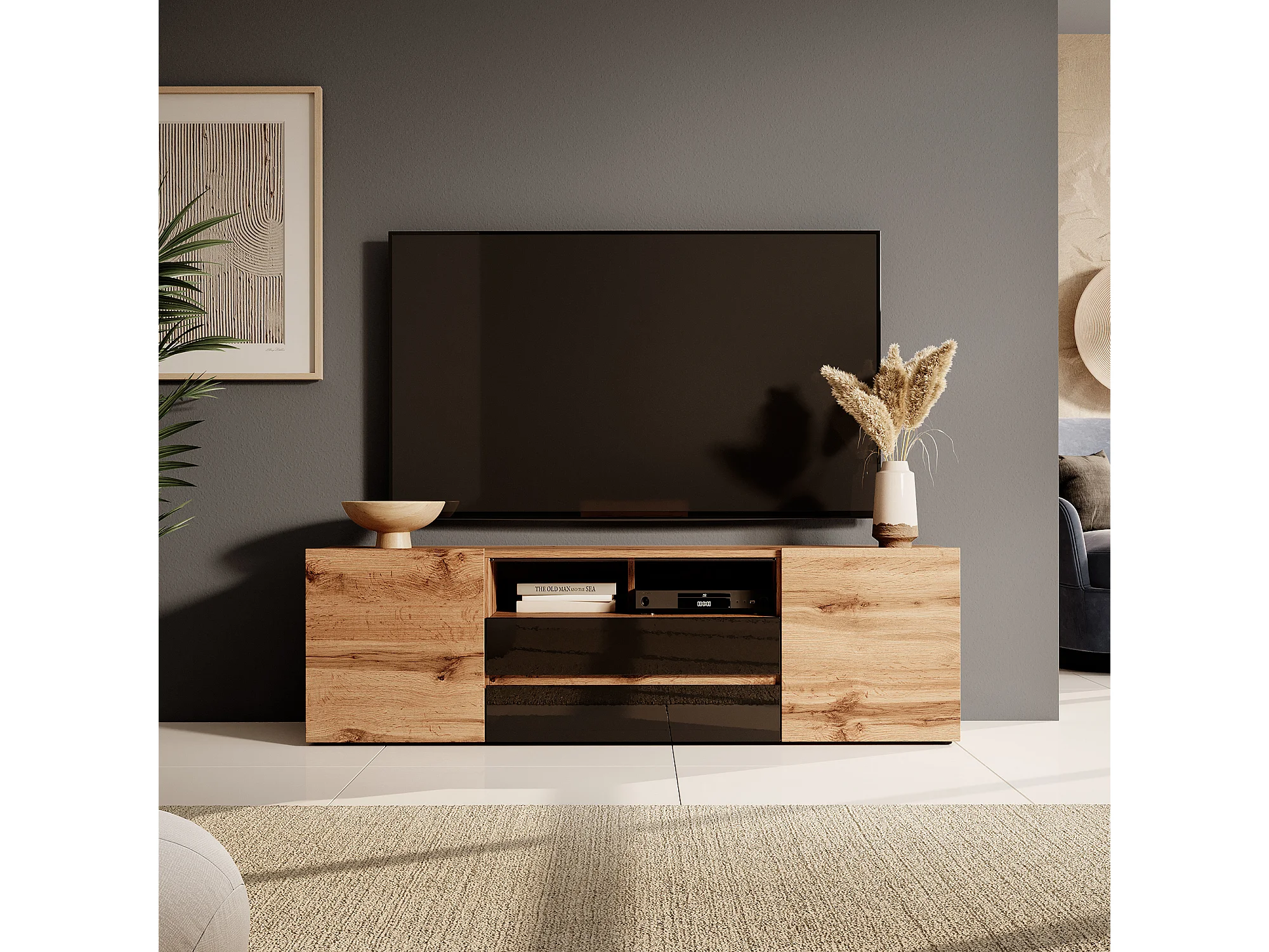 Mobile TV / Tavolino TV Per Salotto / Porta TV con Scomparti / Luci LED (Quercia Dorata / Nero Lucido) - Bros