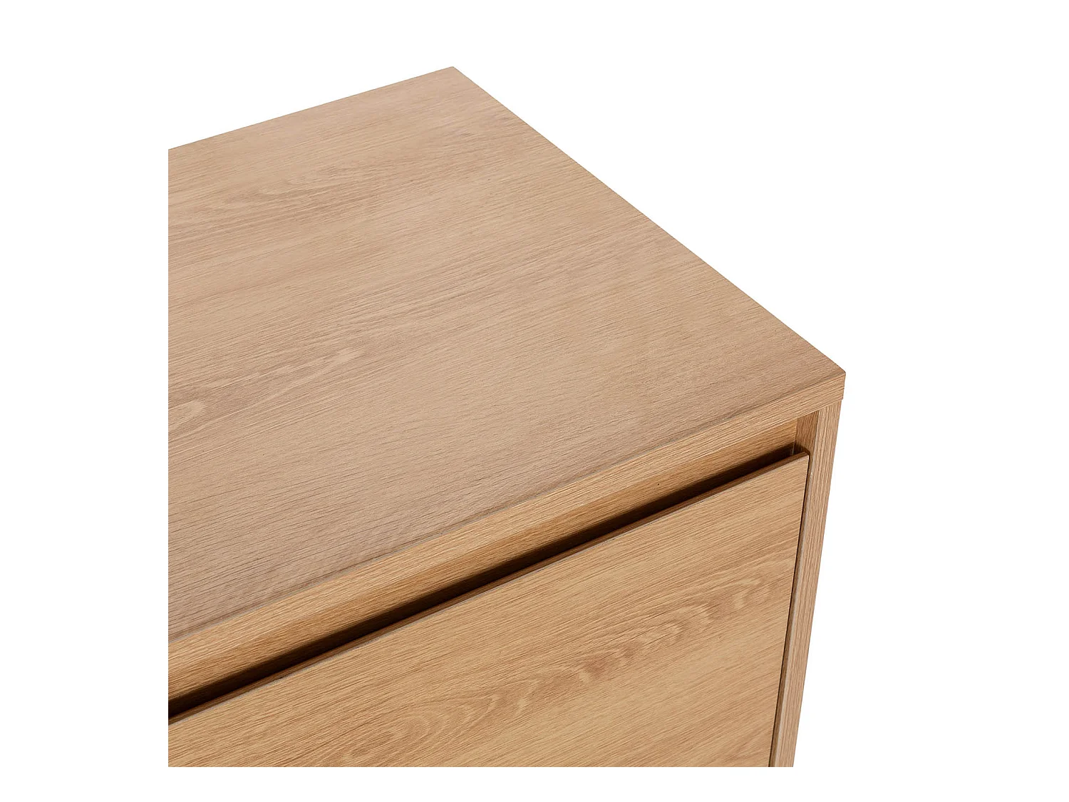 Tavolino scandinavo con ante scorrevoli, decoro in legno scanalato,