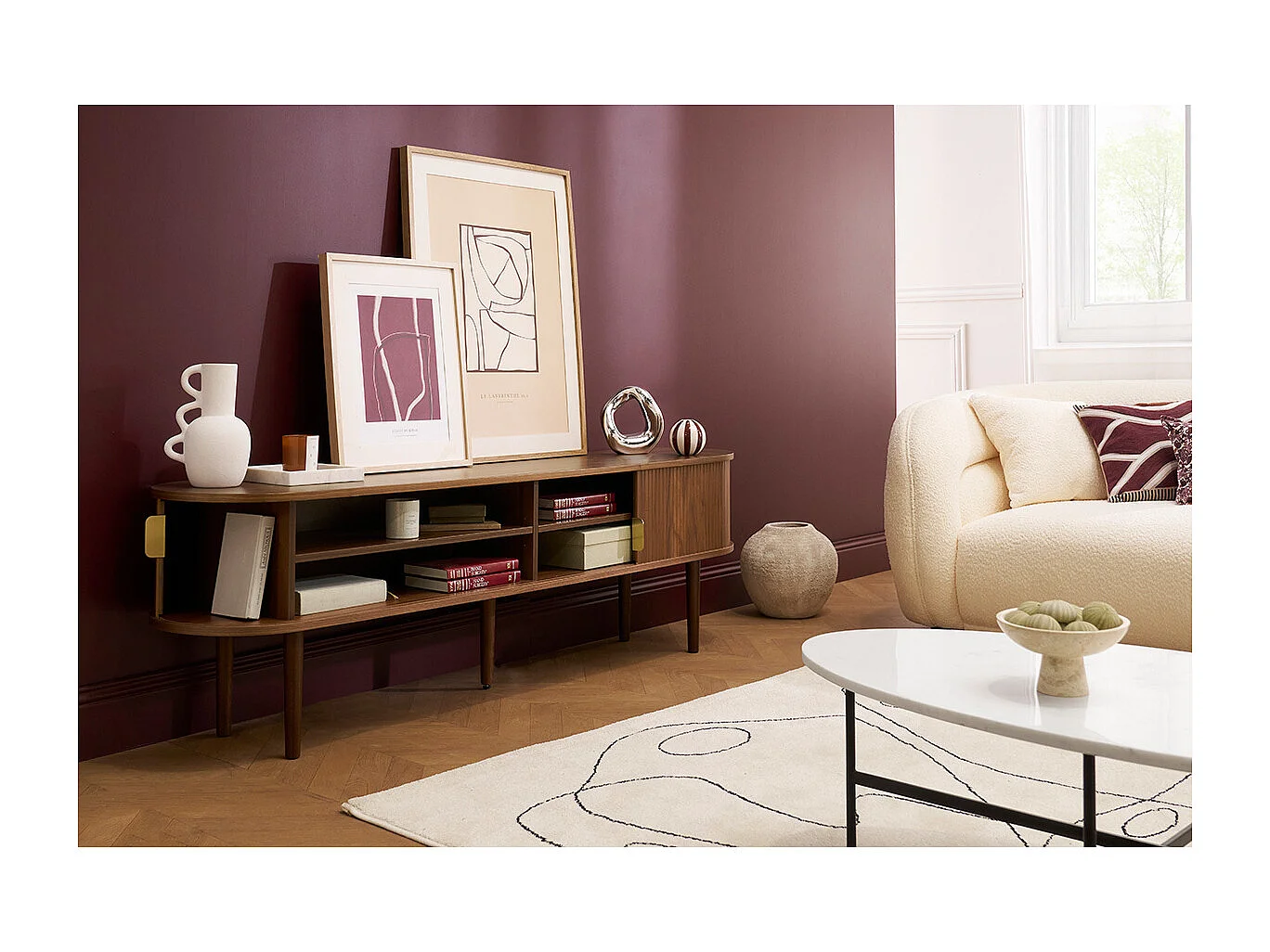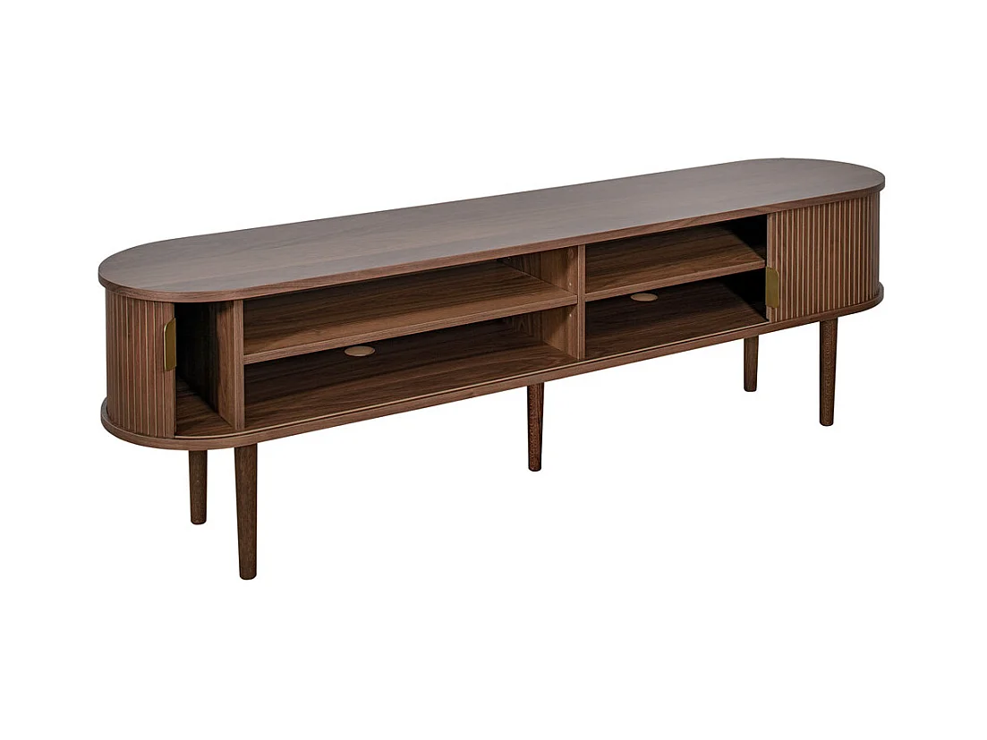 Mobile TV vintage legno scuro noce con ripiani 2 ante scorrevoli L180 cm EPIC