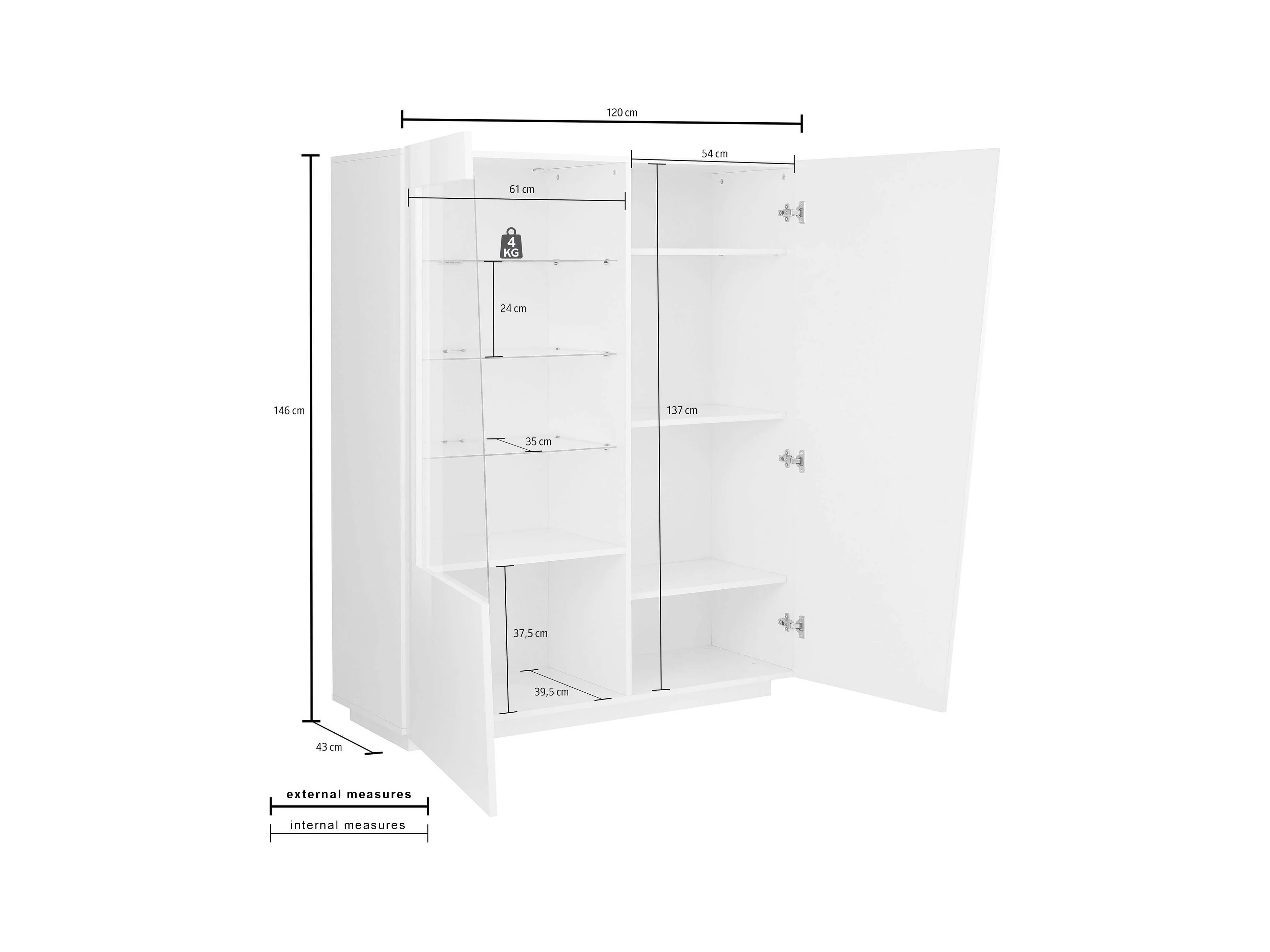 Mobile Vetrina VEGA L 120 x H 146 x P 43 cm grigio ardesia