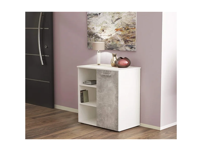 MOBILETTO 1 ANTA E 3 MENSOLE MARK BIANCO E CEMENTO CHIARO