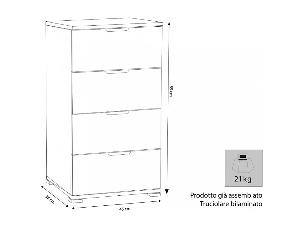 MOBILETTO 4 CASSETTI ROVERE GRIGIO