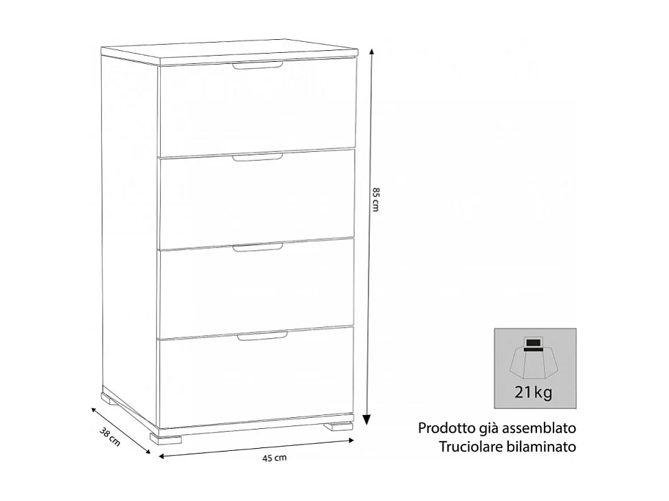 MOBILETTO 4 CASSETTI TINTA NOCE