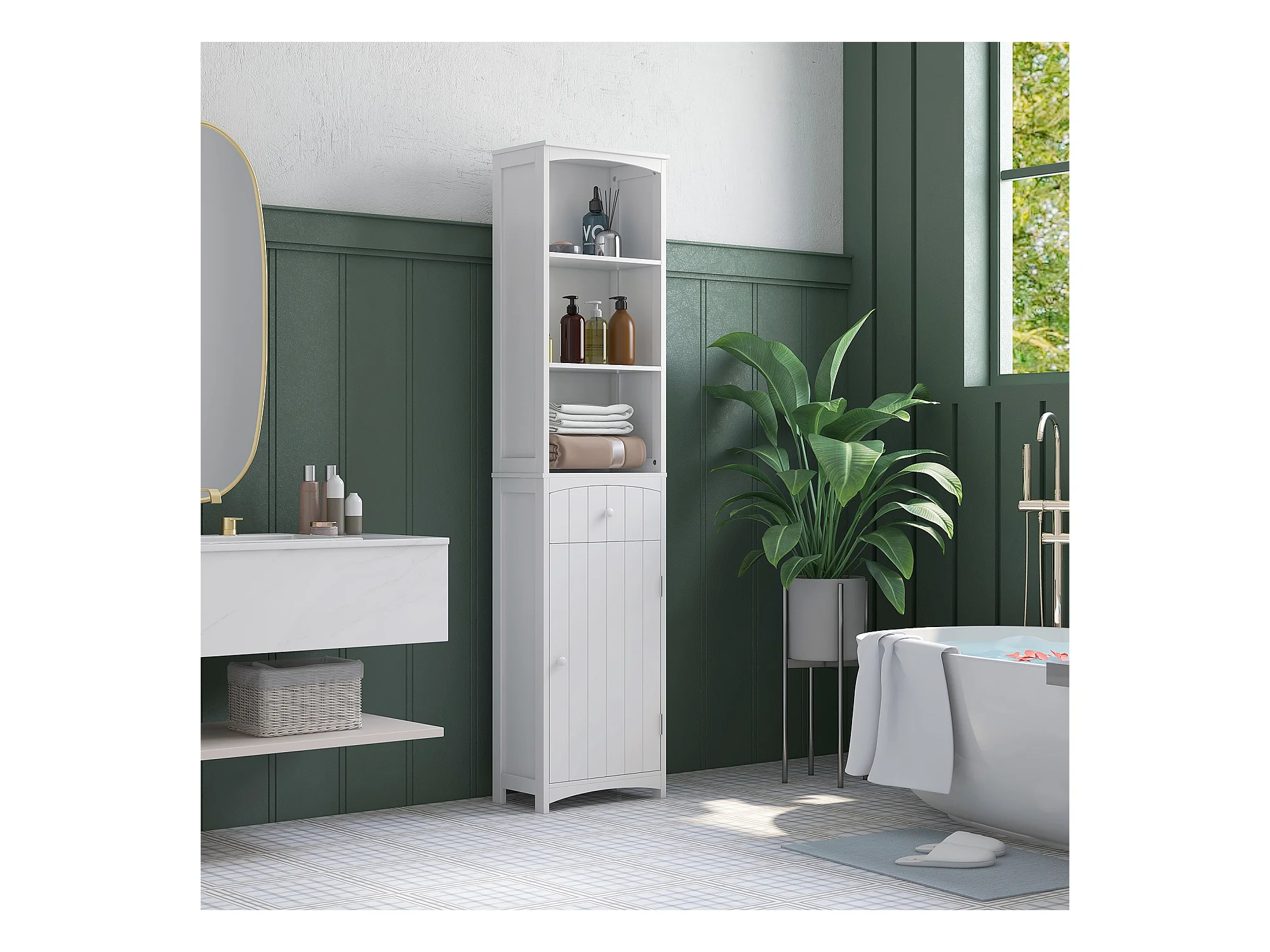 Colonna bagno con ripiano aperto armadietto e cassetto bianco