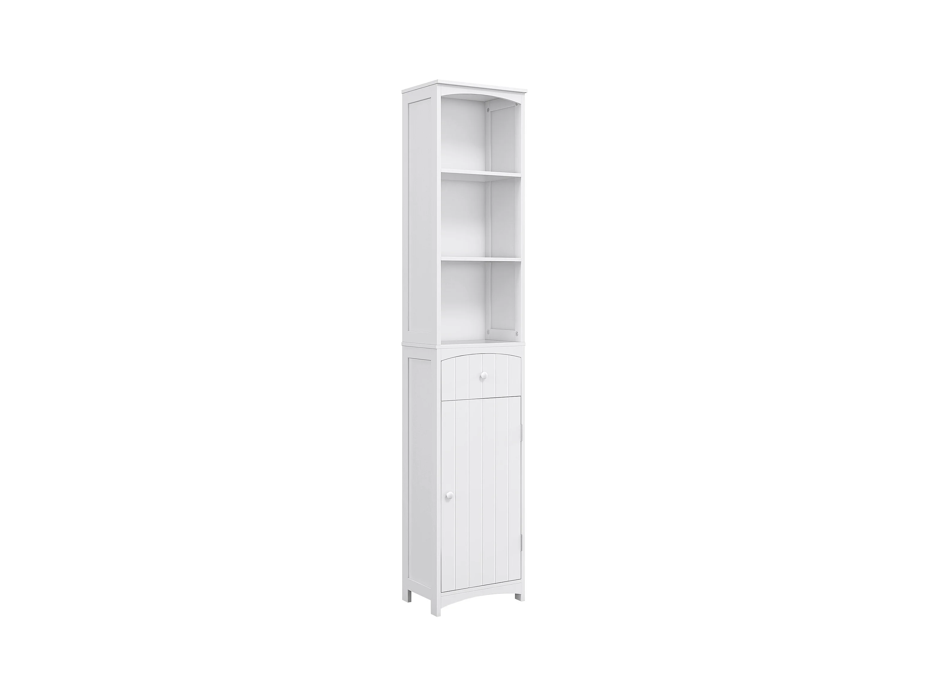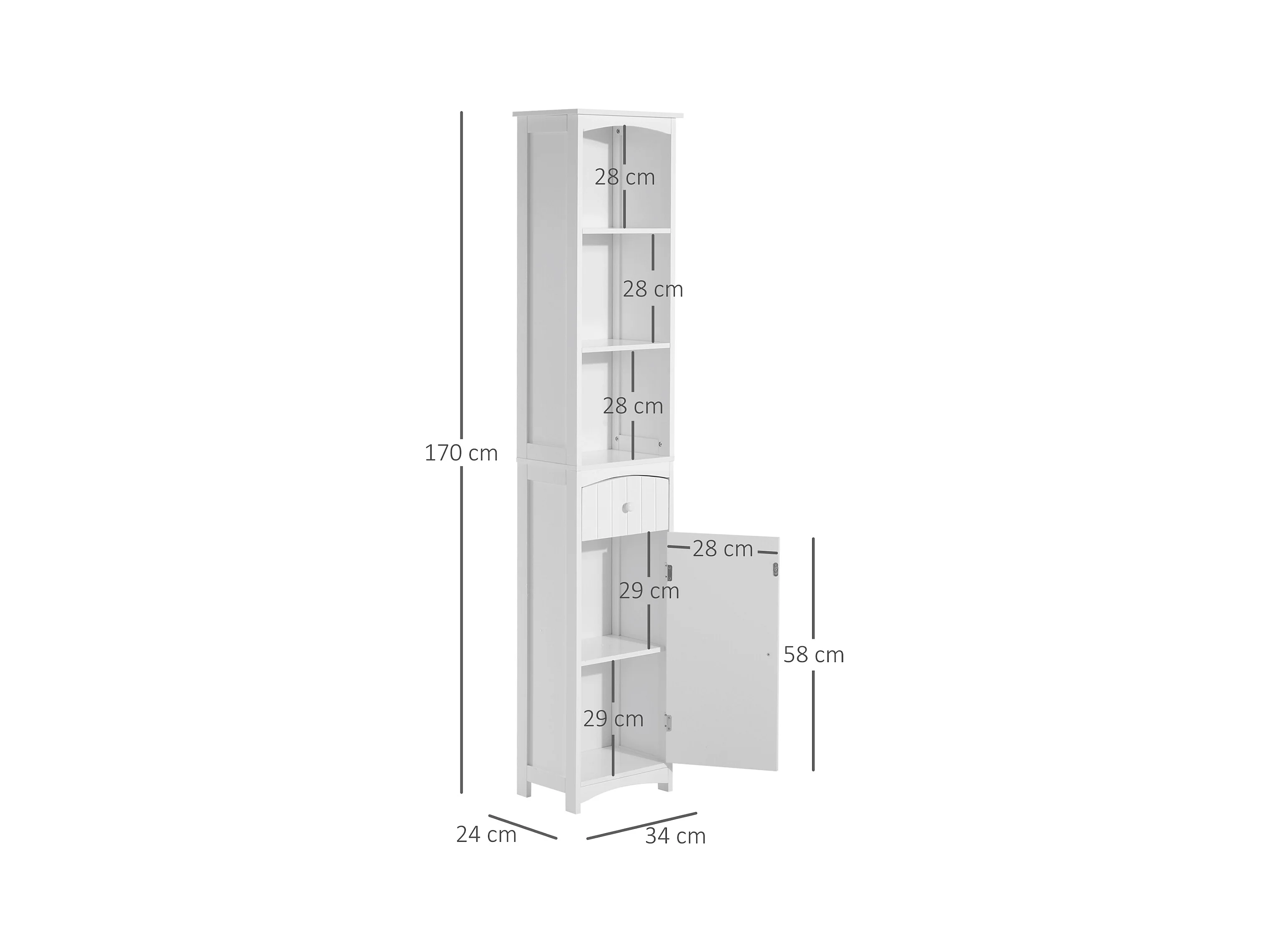 Schmaler Badezimmerschrank, mit 3 Einlegeböden und 1 Schublade, Holz, weiß (34x24x170,5 cm)