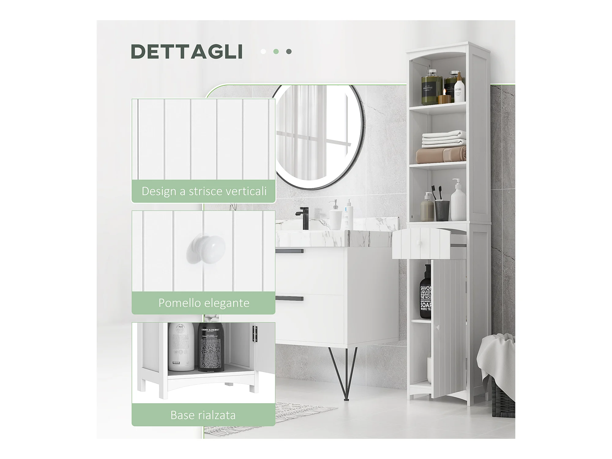 Colonna bagno con cassetto e 2 armadietti ripiano regolabile bianco