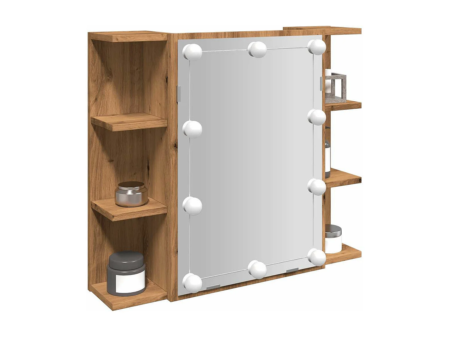 Mobiletto a specchio con LED in rovere artigianale 70x16,5x60 cm