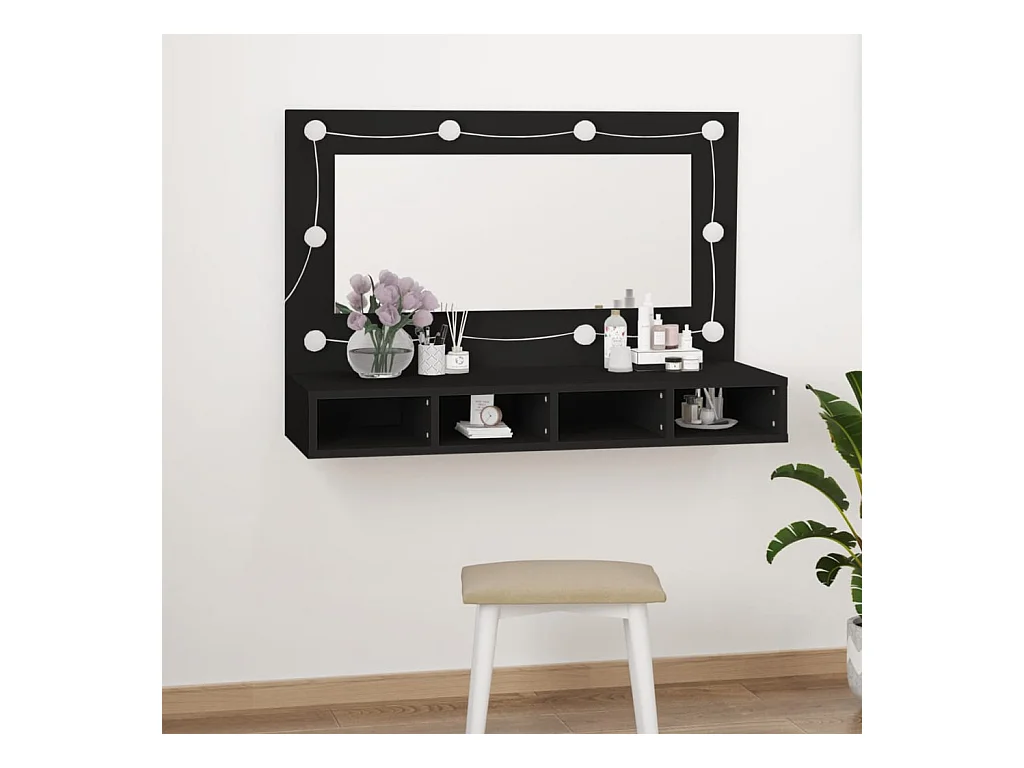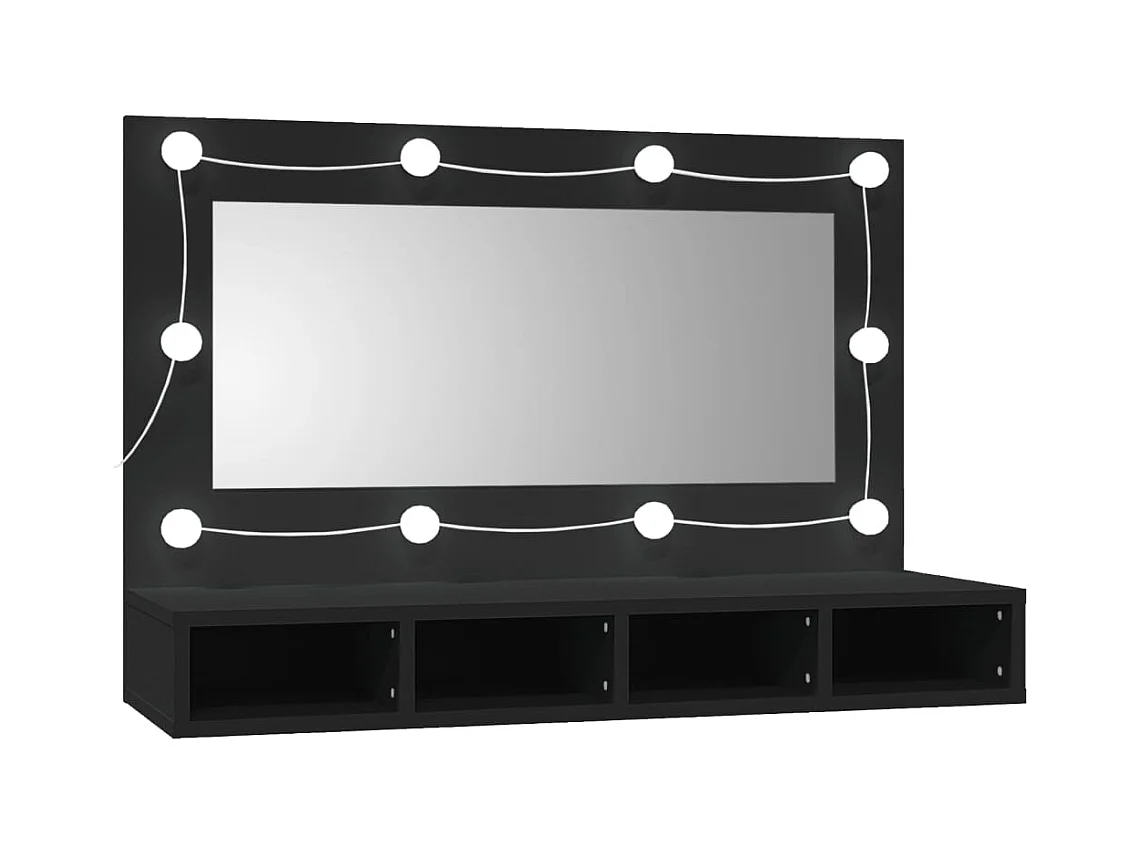 Mobiletto a specchio con LED nero 90x31,5x62 cm