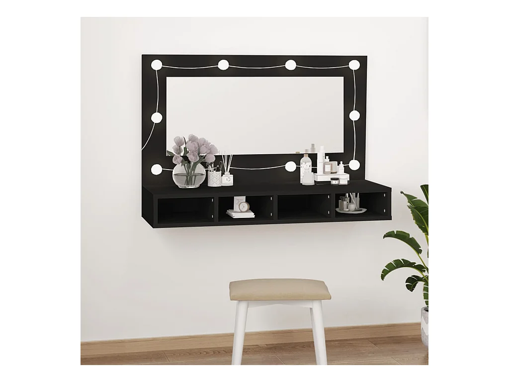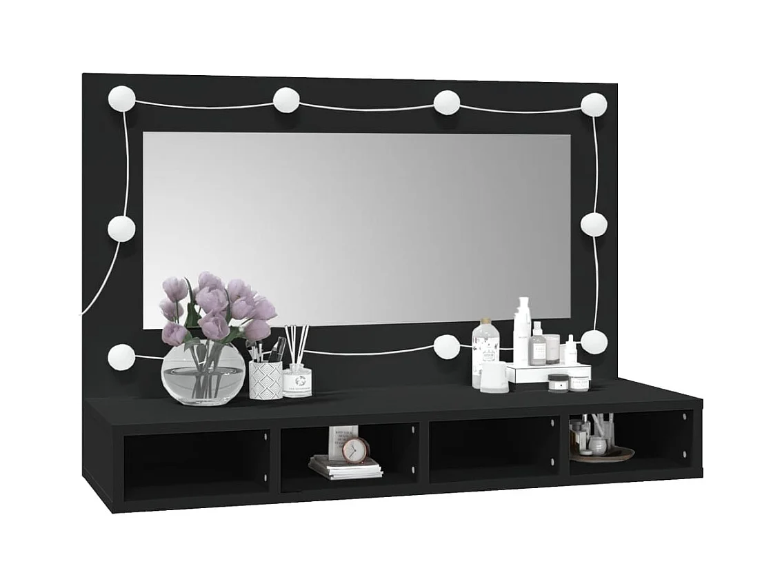 Mobiletto per bagno con specchio LED nero 90x12x45 in acrilico