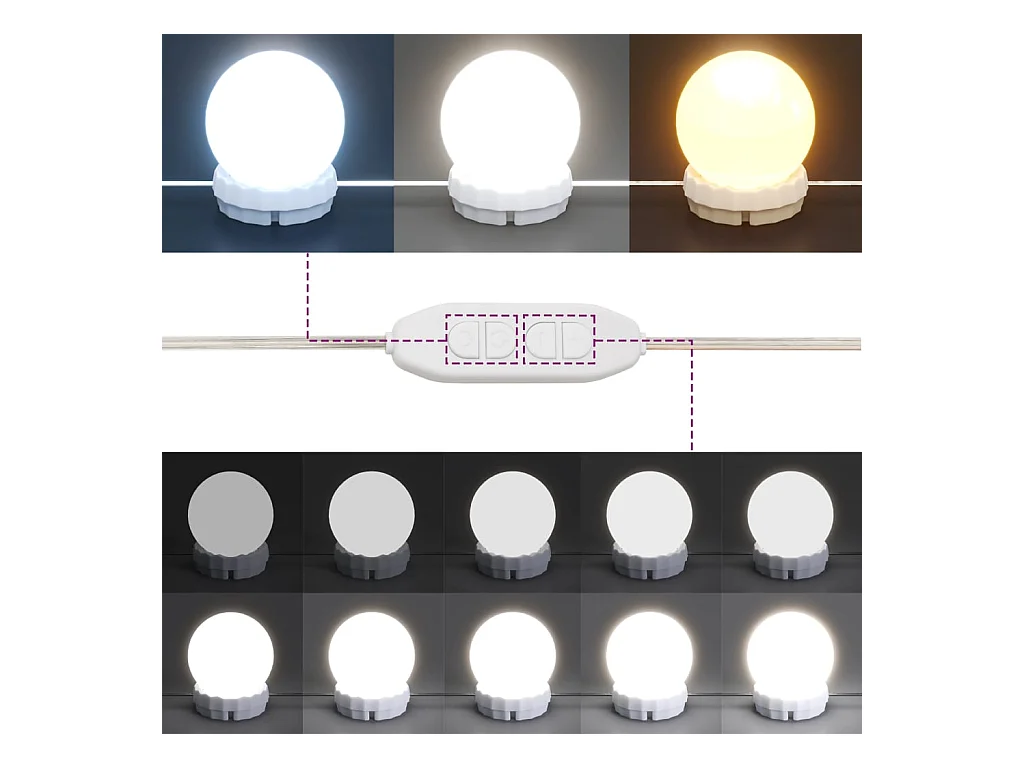 Mobiletto da bagno rotondo con specchio e luci LED, nero, 47 x 47 x 17,5 cm