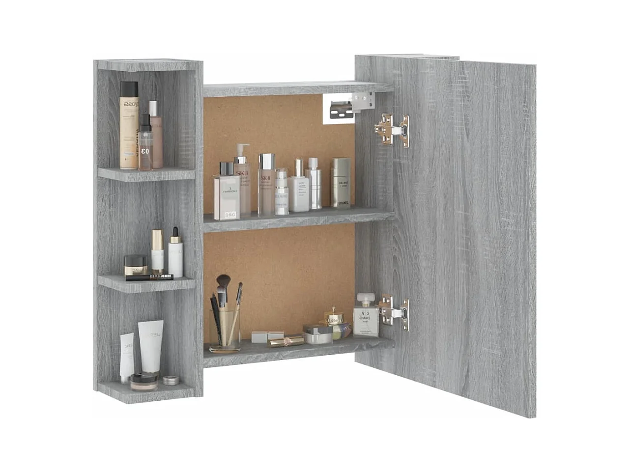 Mobiletto con specchio LED Sonoma Grey 60x12x45 cm in legno ingegnerizzato