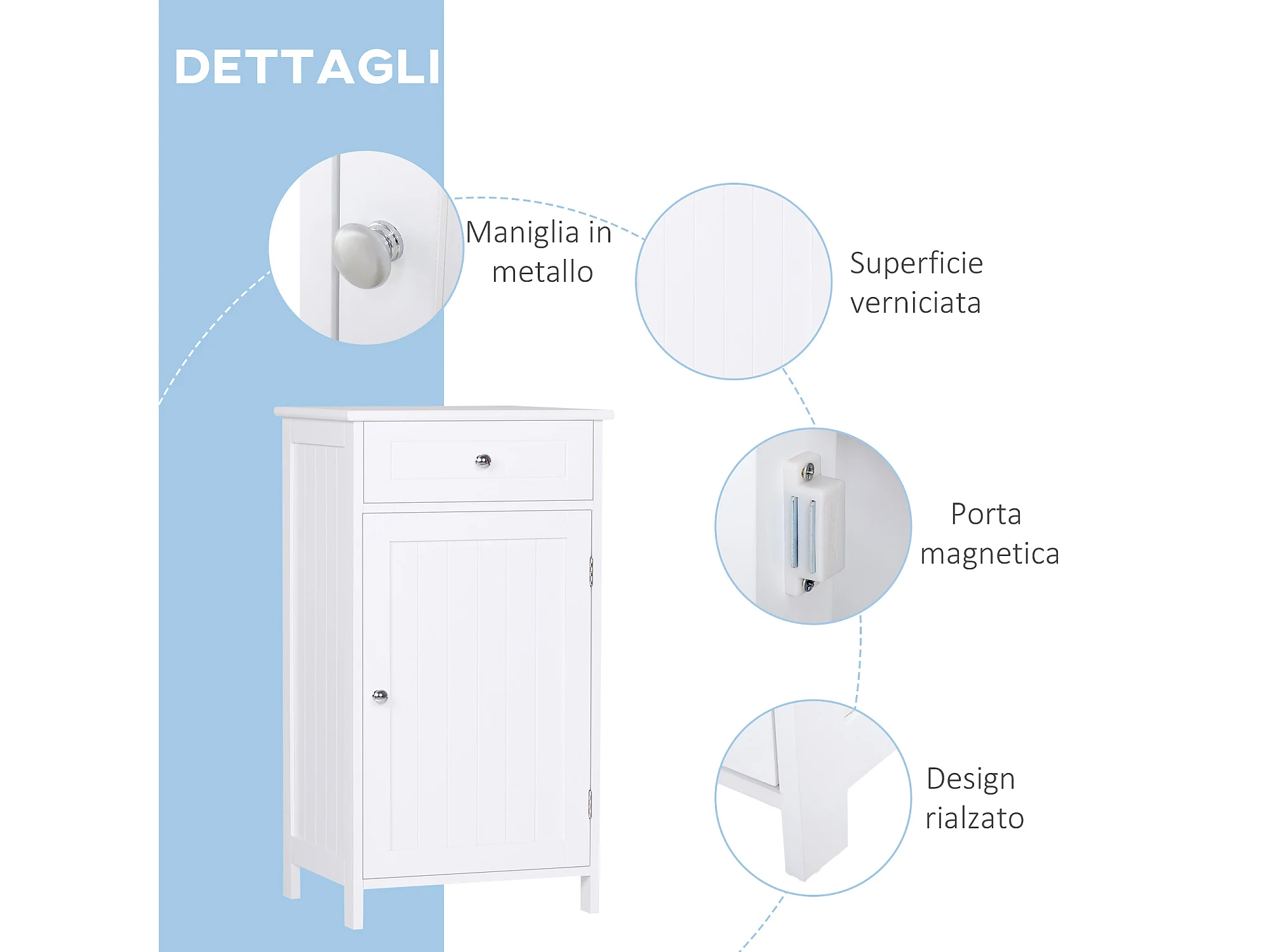 Mobiletto armadietto anti-ribaltamento da bagno in mdf bianco