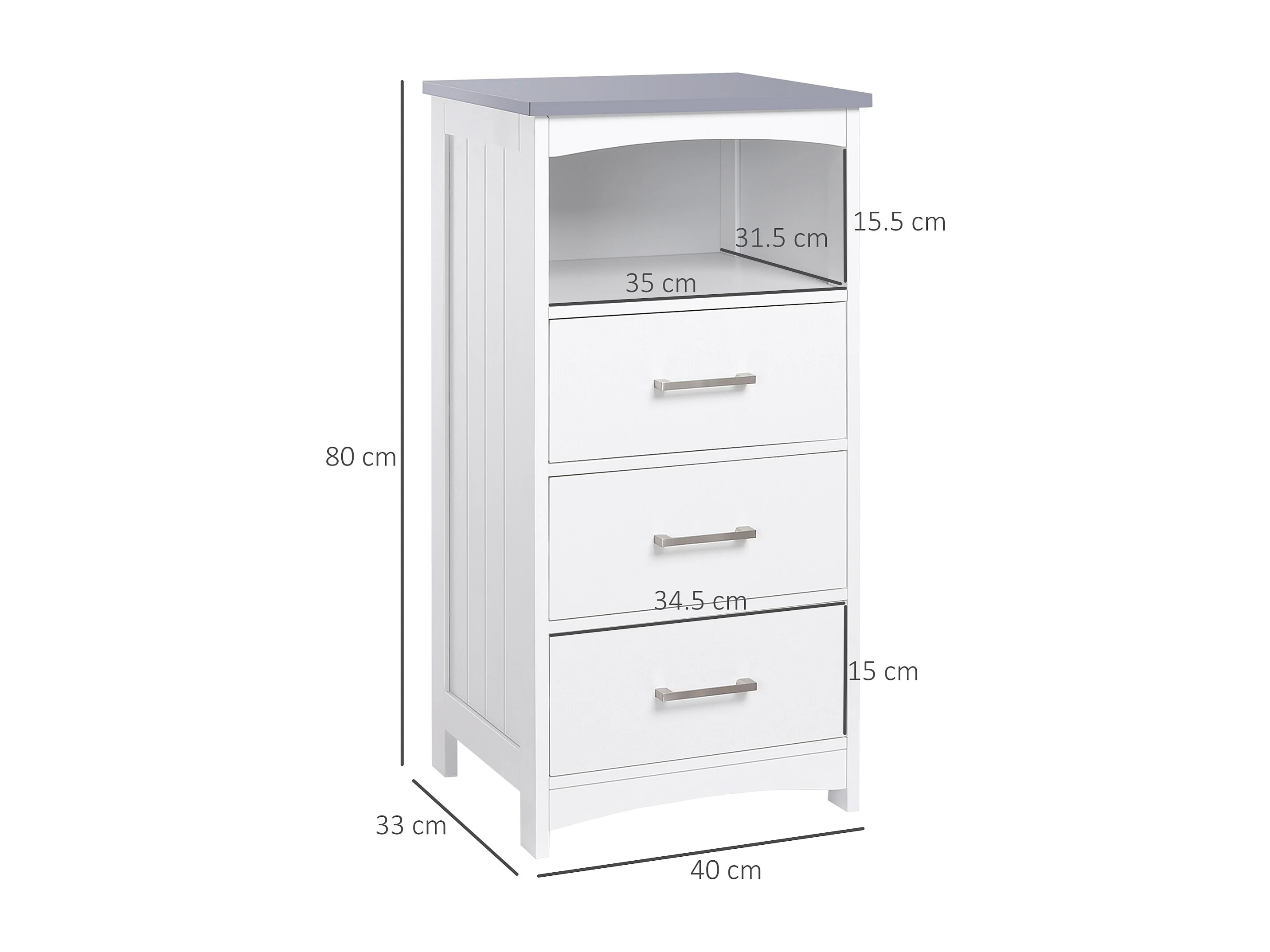 Mobiletto bagno con 3 cassetti e ripiano aperto in mdf bianco
