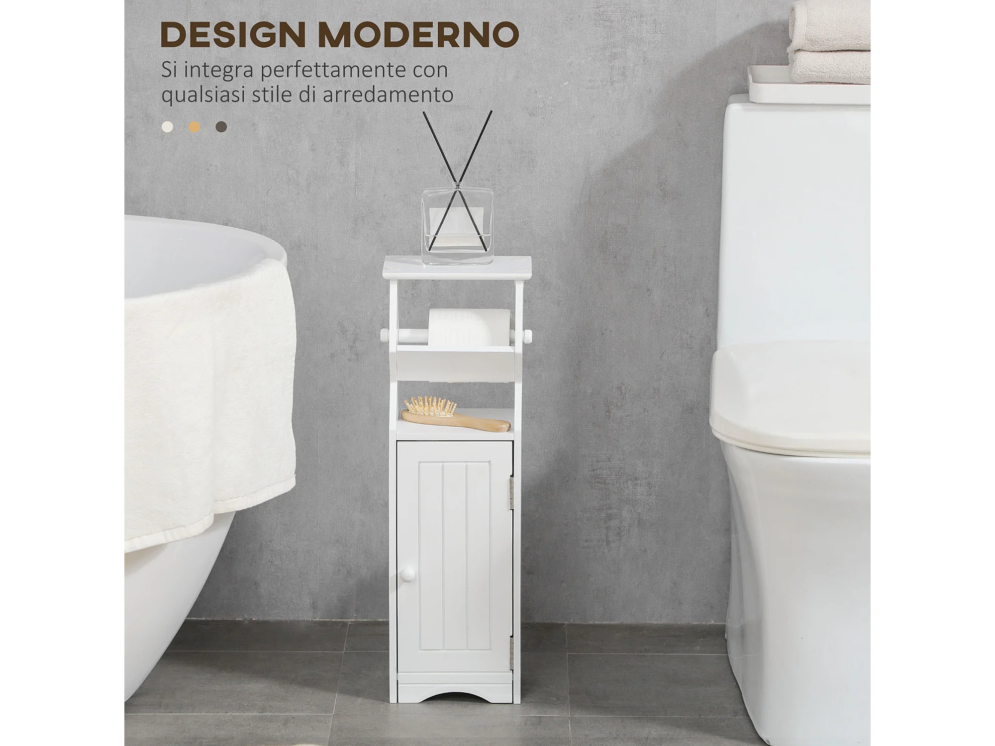 Mobile bagno porta carta igienica con armadietto e ripiano bianco