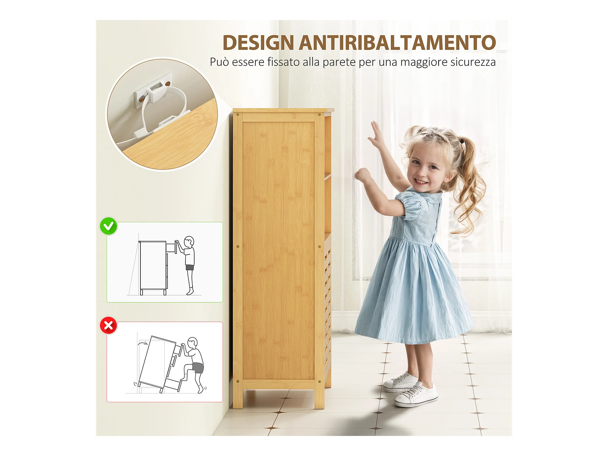 Armadietto bagno in bambù con ripiano interno regolabile