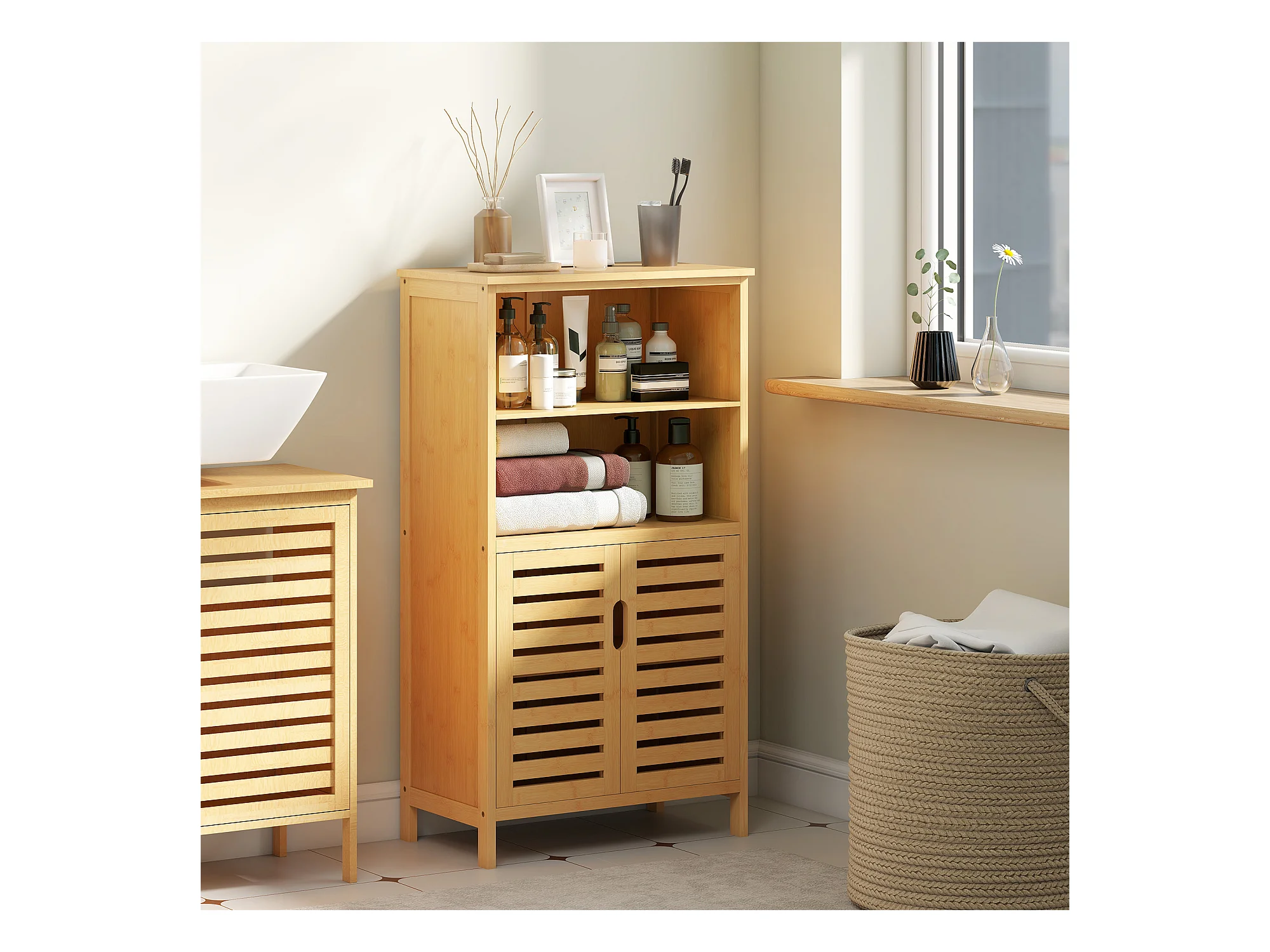Mobile bagno con armadietto a 2 ante e ripiani in bambù