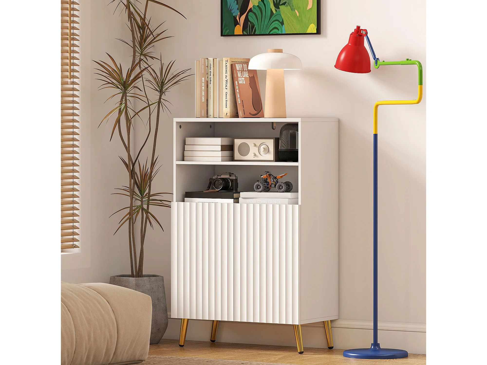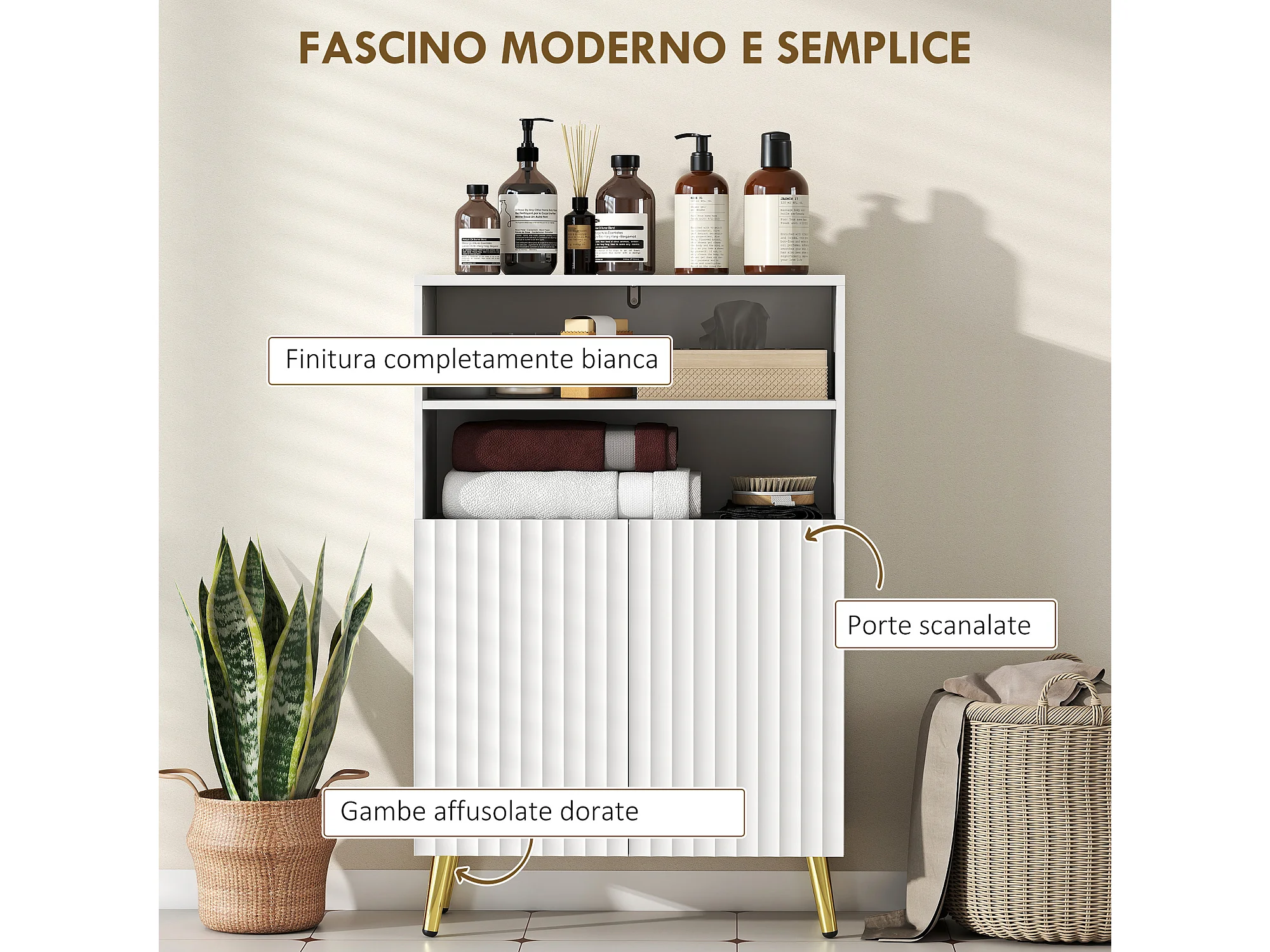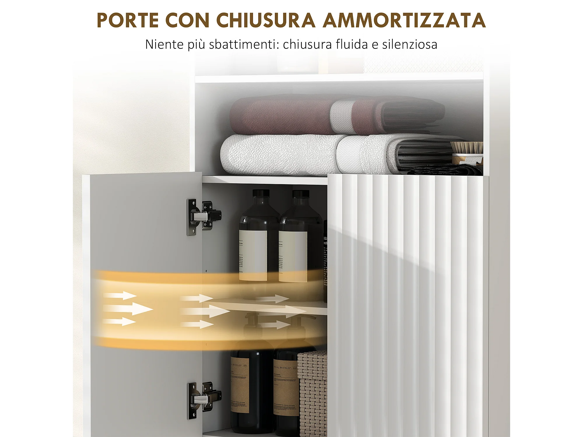 Mobiletto bagno con ripiani aperti e ante ammortizzate bianco