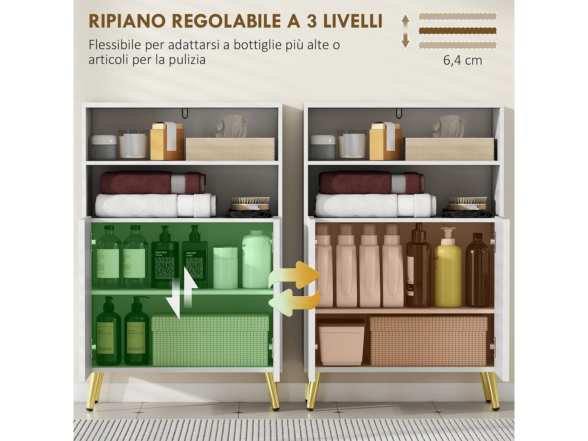 Mobile bagno 2 ante con ripiano regolabile e 2 cassetti bianco