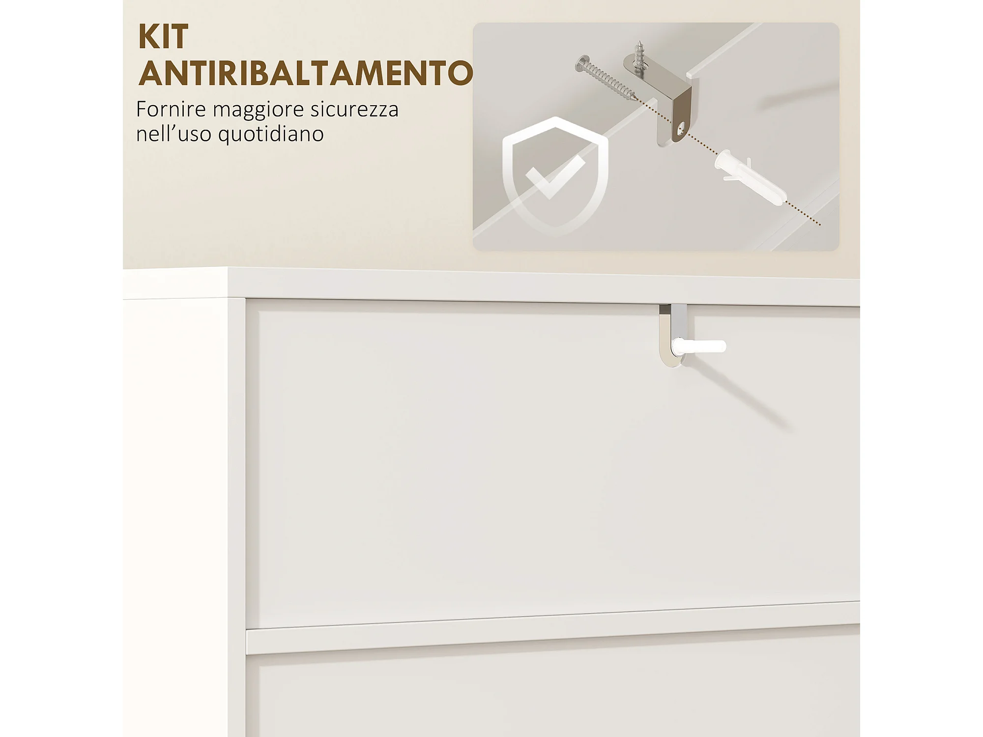 Cassettiera moderna e scaffali soppalco anta bianca 74cm