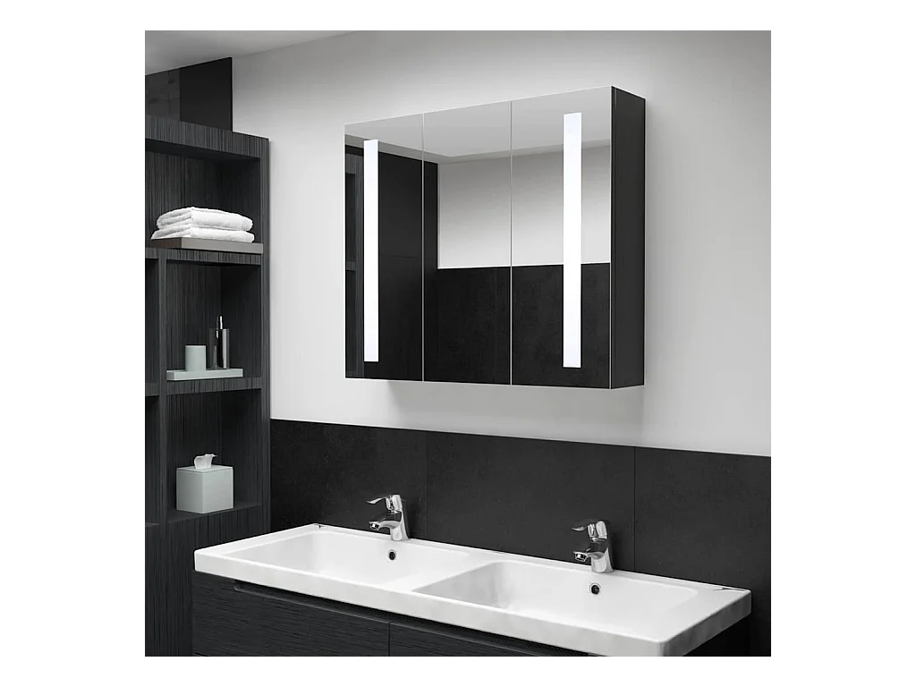 Mobile bagno con specchio LED Grigio lucido 62x14x60 cm