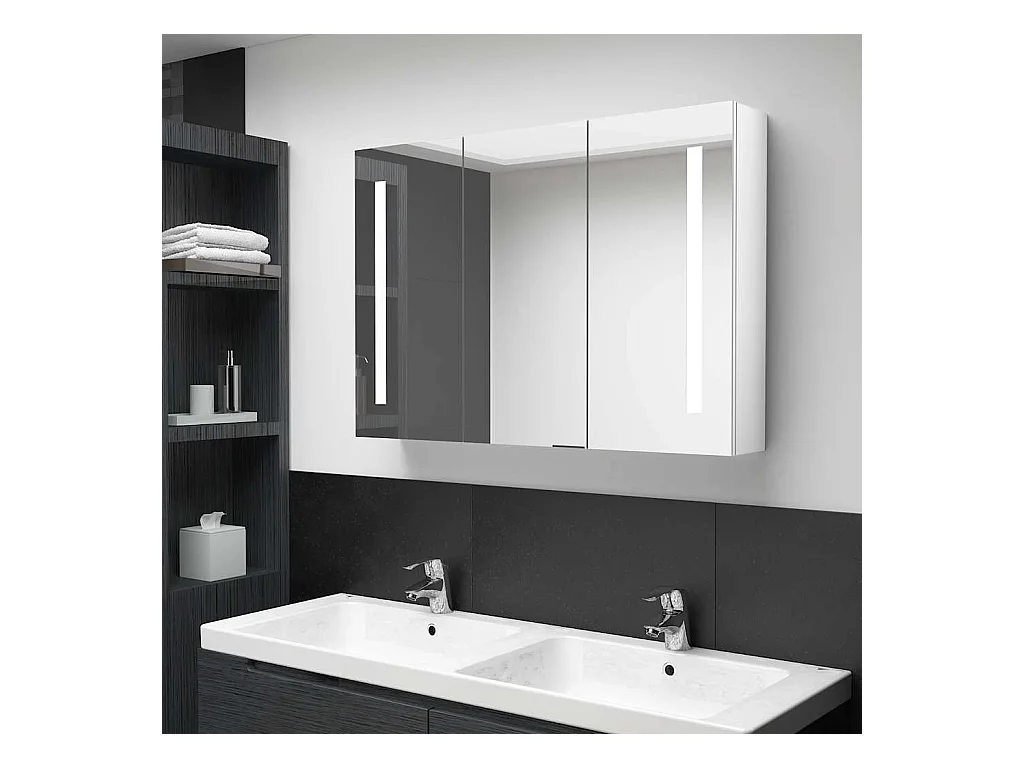 Specchio contenitore con LED Bianco lucido 90x31,5x62 cm