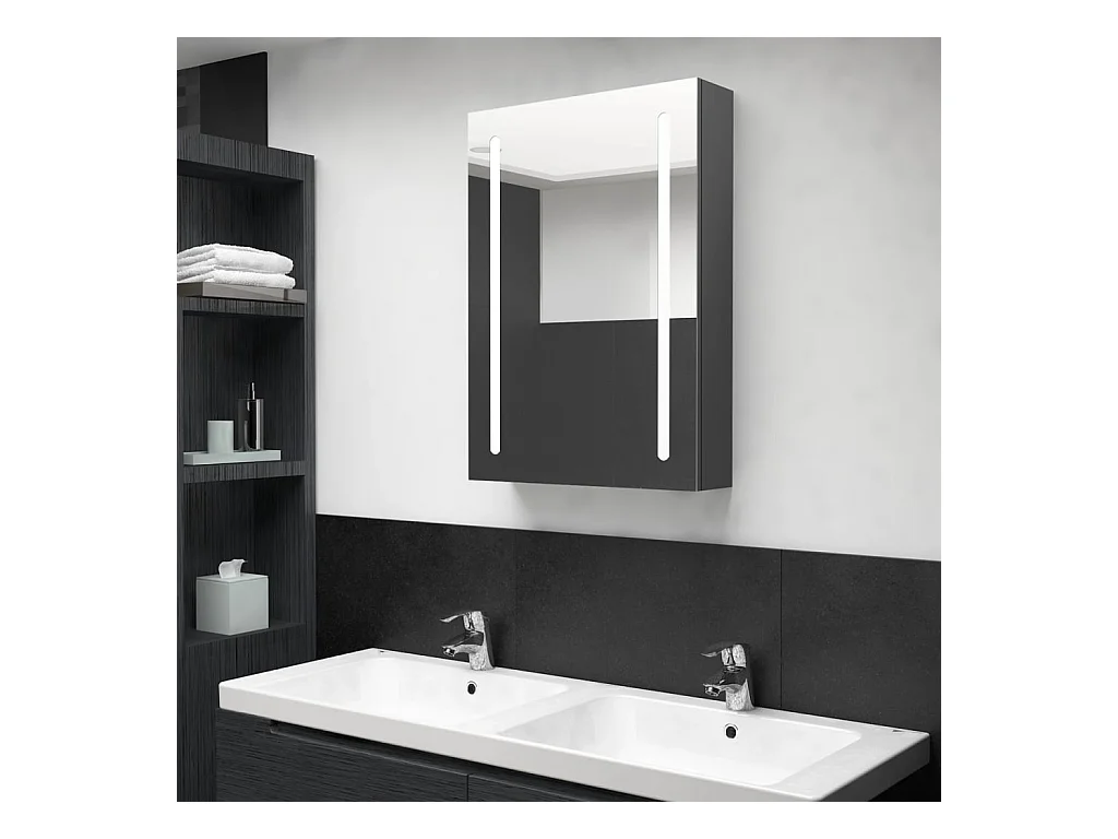Mobiletto specchio da bagno con LED grigio 60x13x52 cm