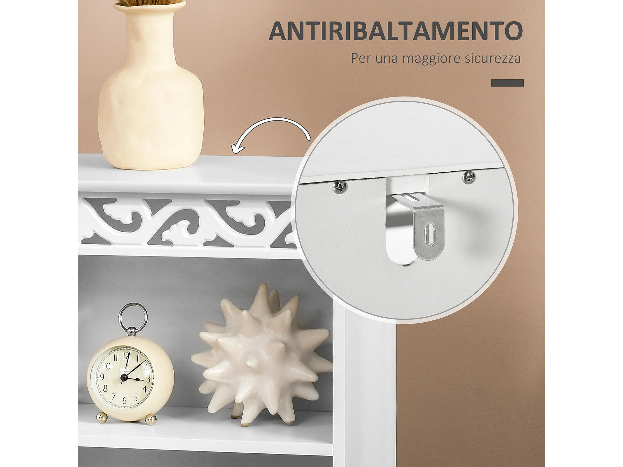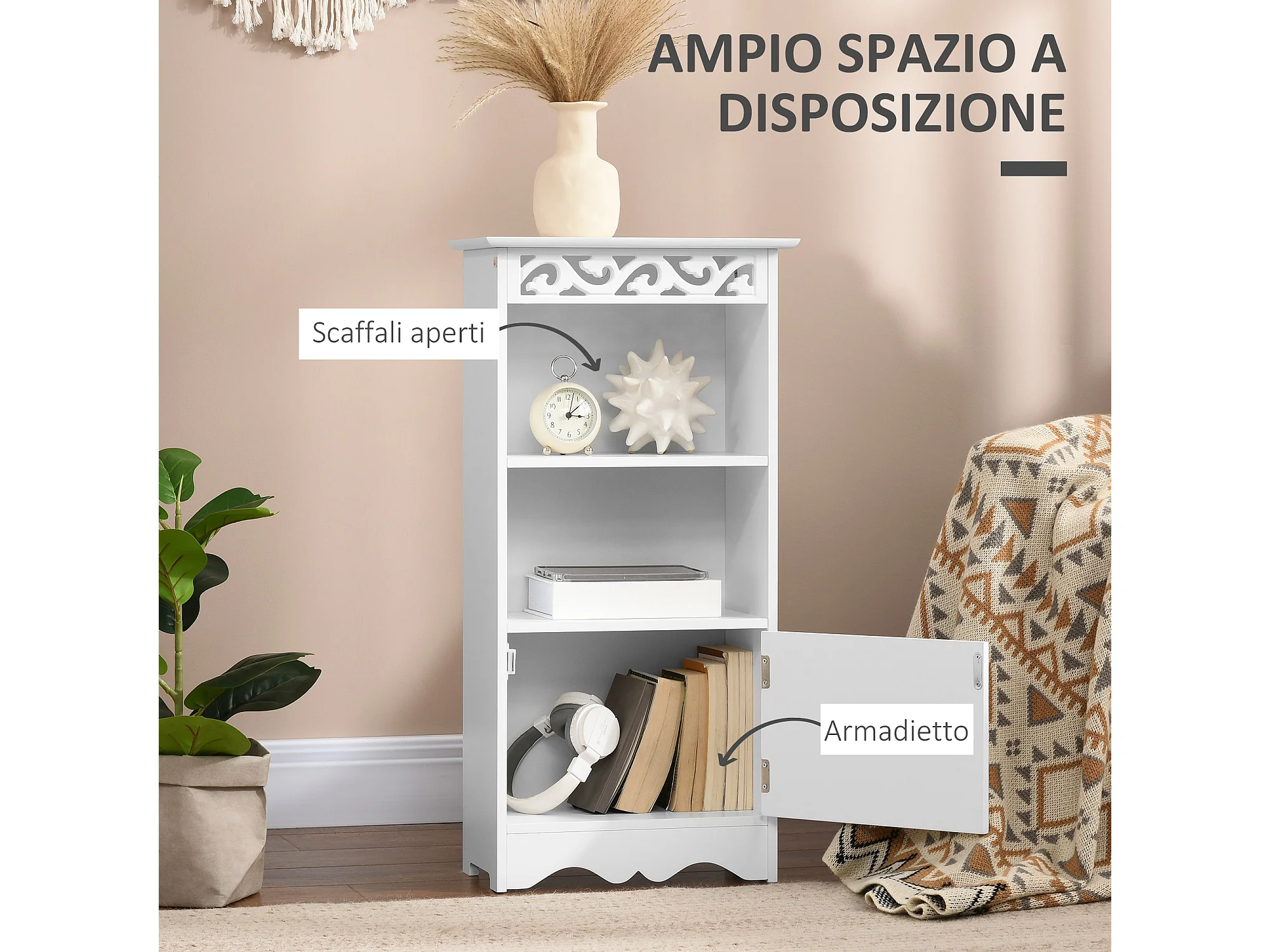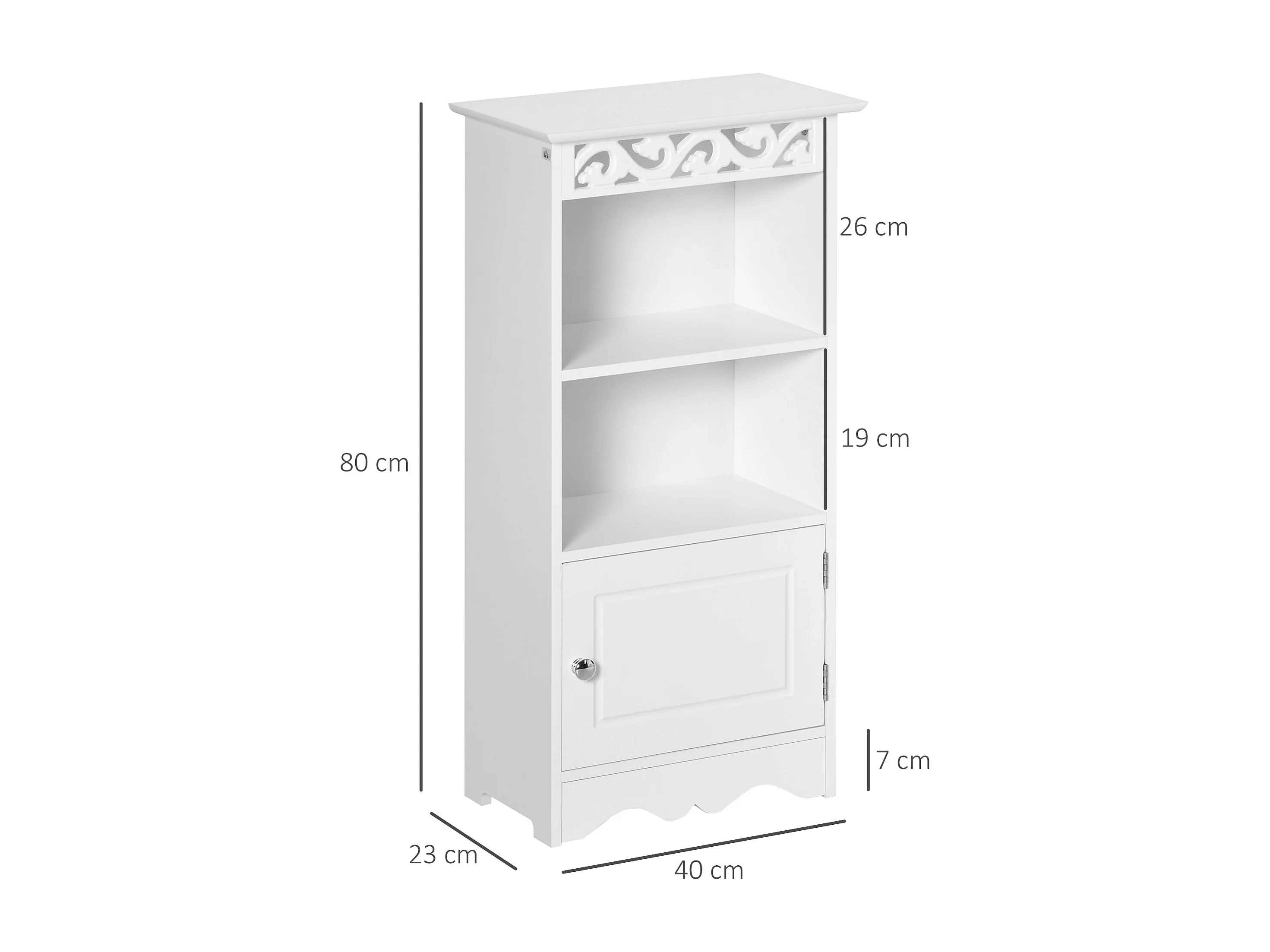 Mobiletto bagno da terra con armadietto e 2 ripiani in mdf bianco