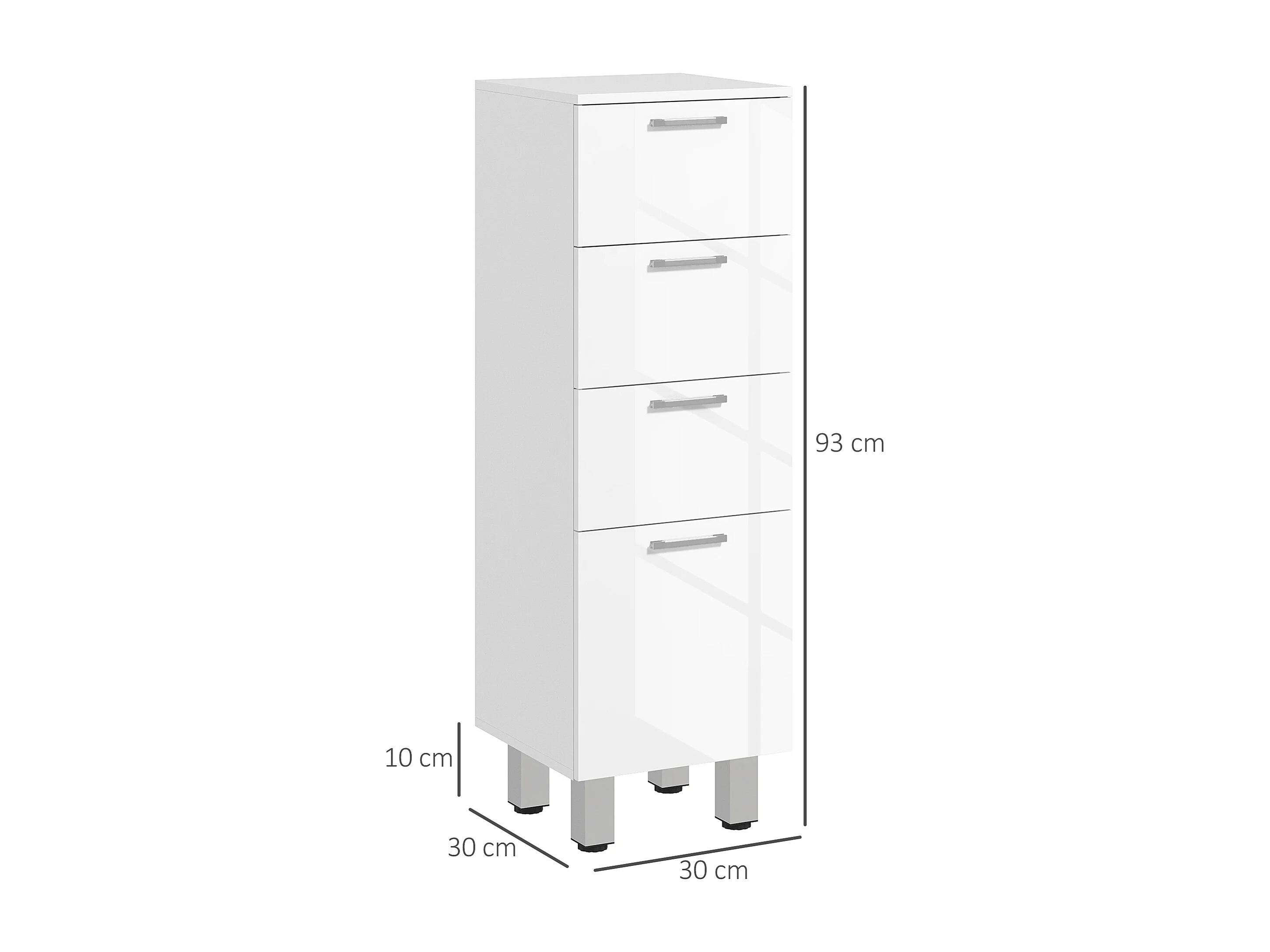 Mobiletto bagno in truciolato con 4 cassetti bianco
