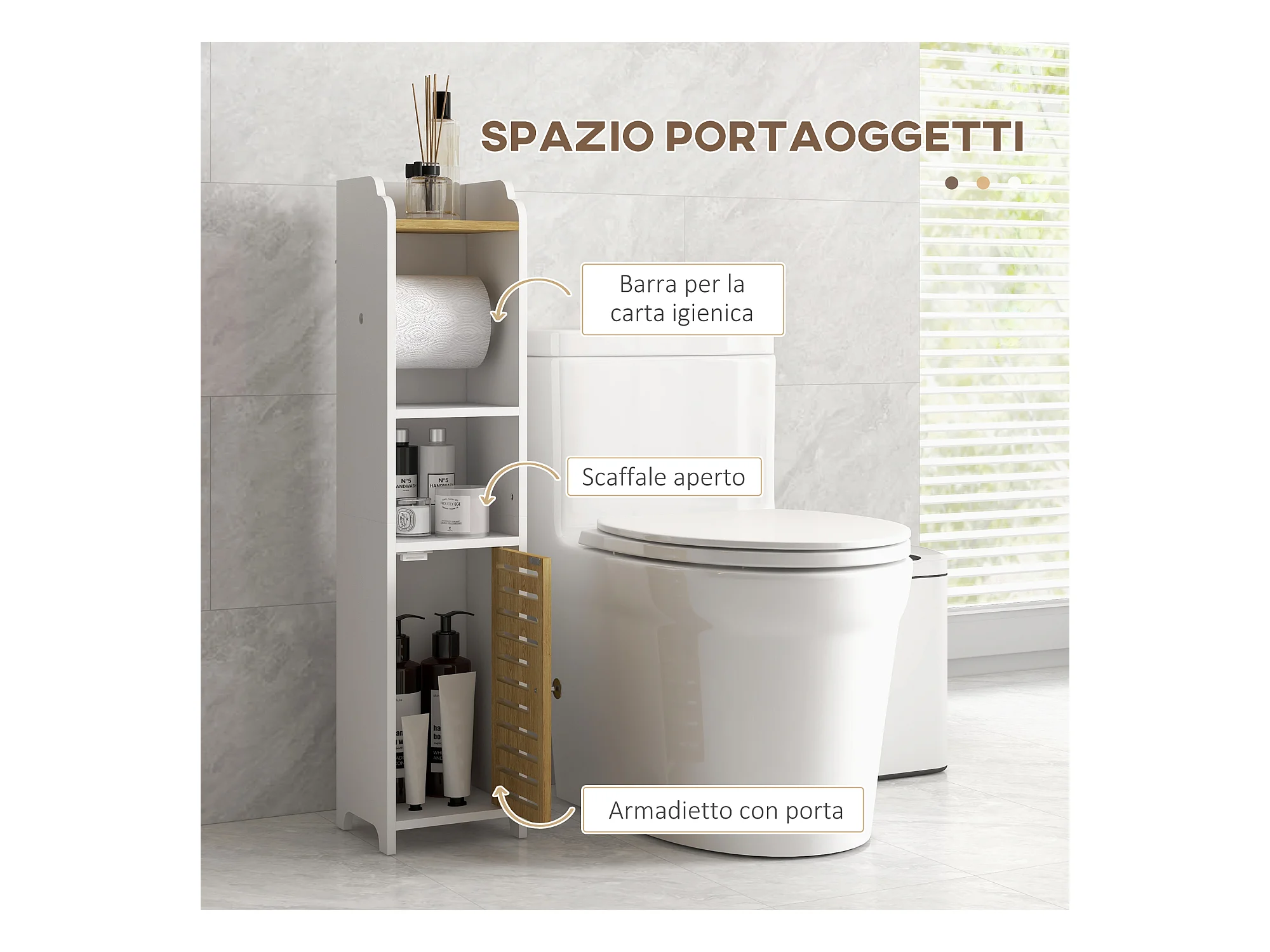 Mobiletto bagno salvaspazio con ripiani e armadietto bianco