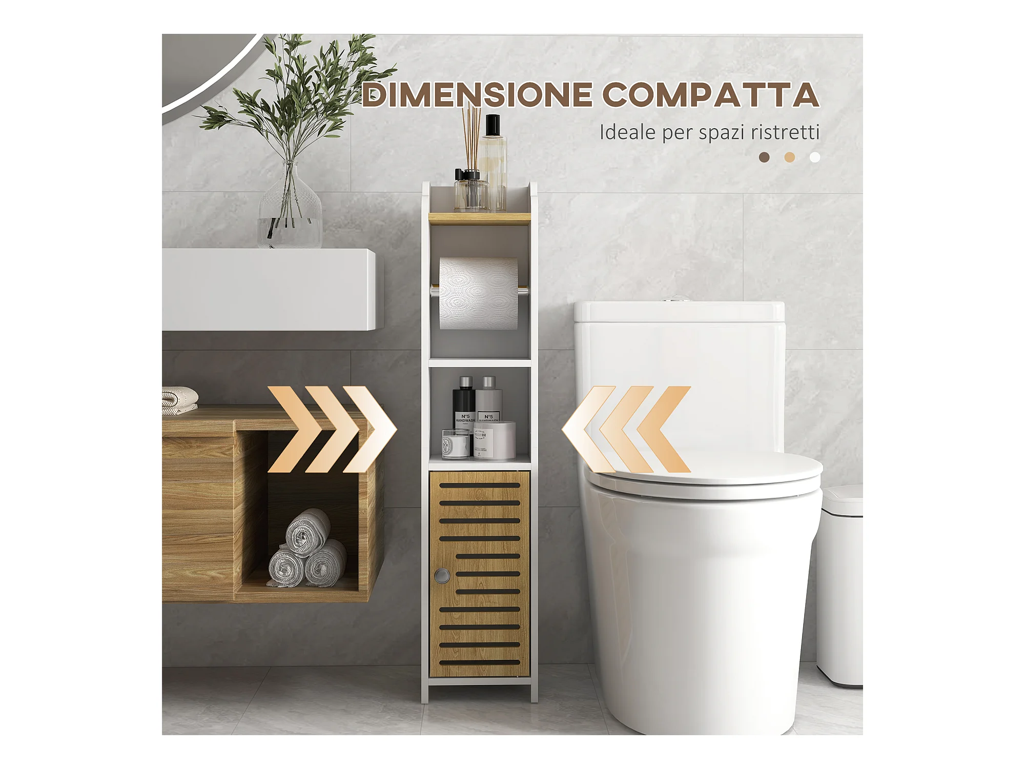 Colonna bagno con ripiano a 3 livelli e armadietto in mdf e truciolato