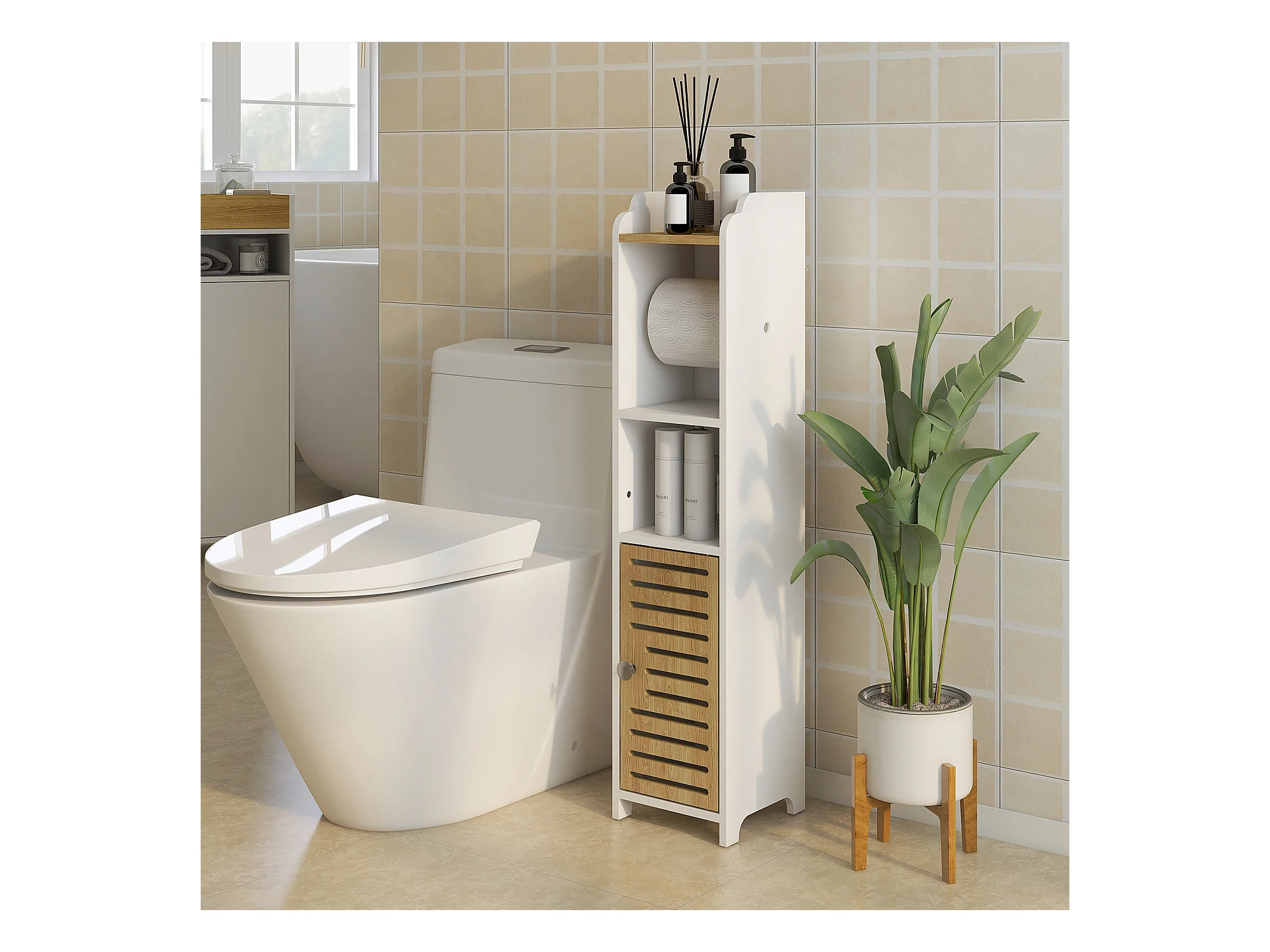 Mobiletto da bagno con portarotolo bianco 39x22x90 cm