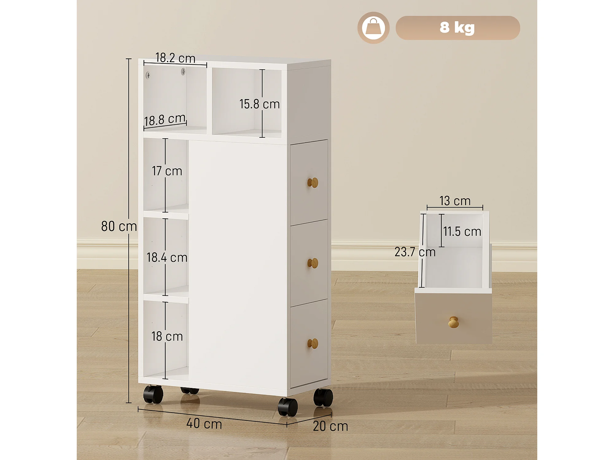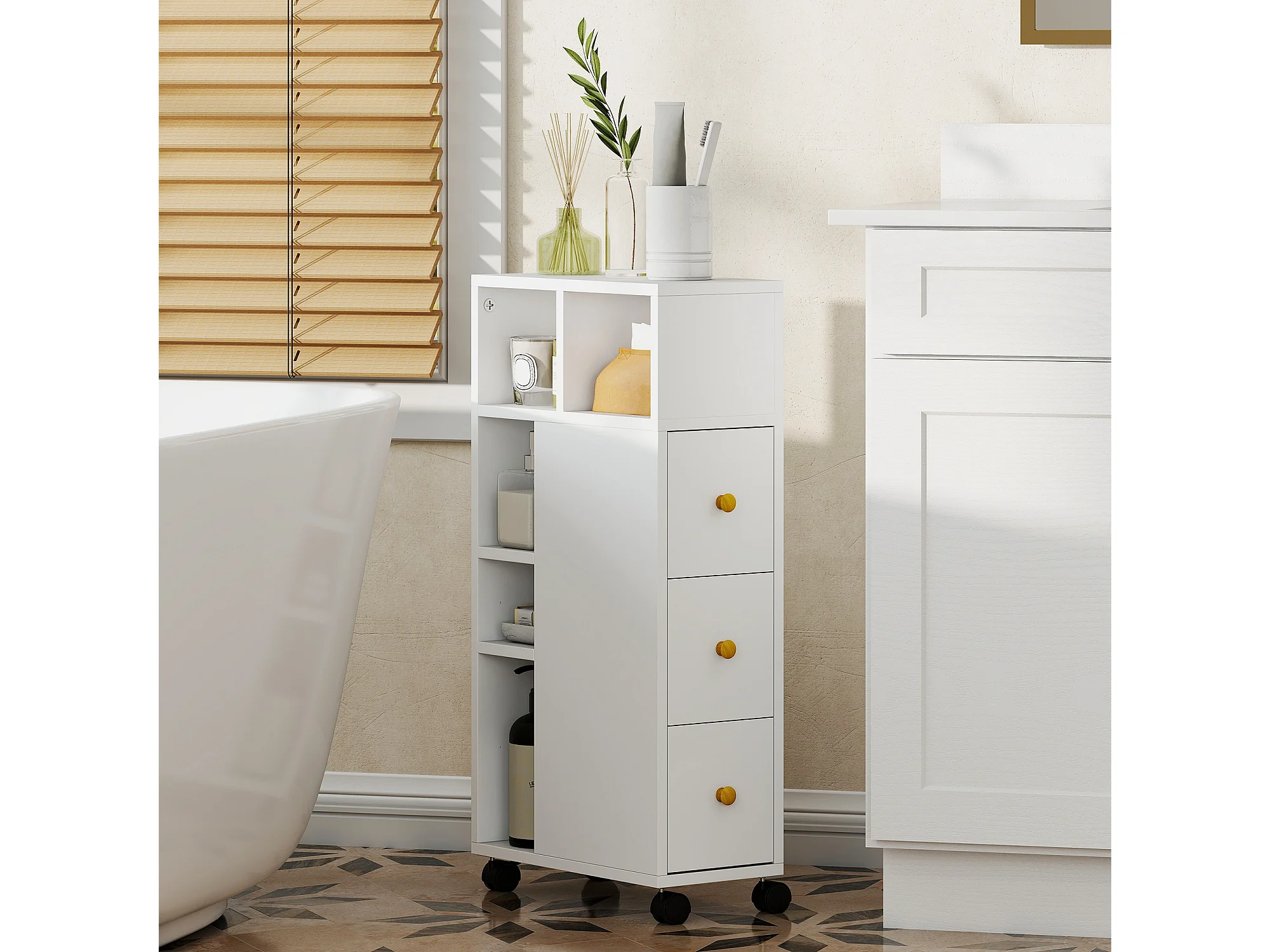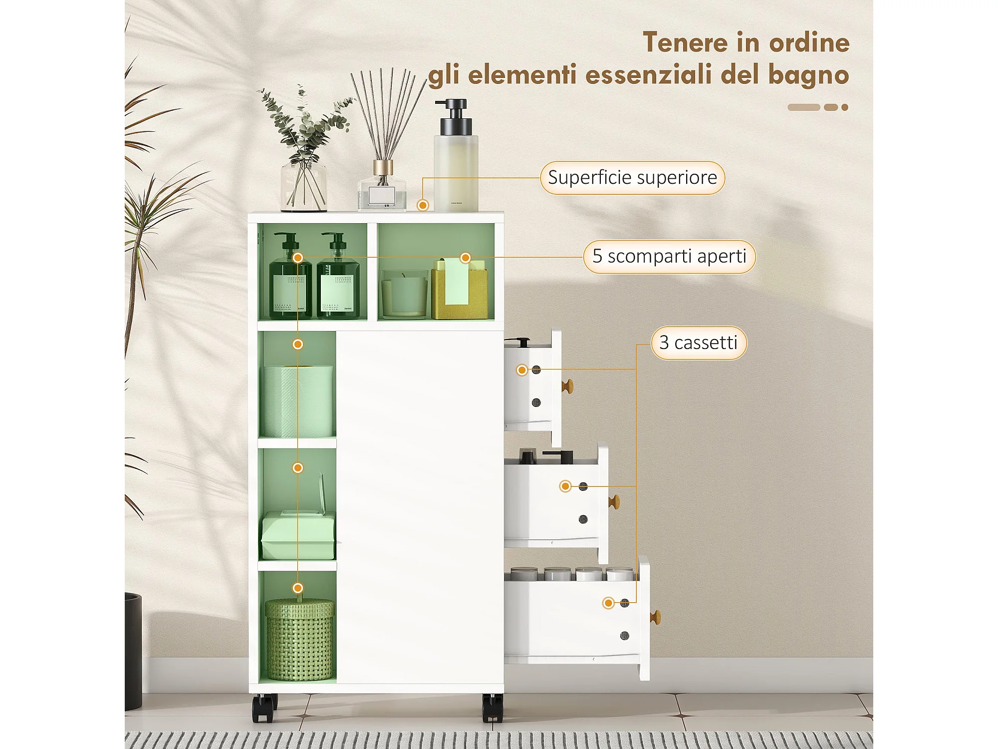 Mobiletto bagno salvaspazio con ruote a freno mobile bagno con 3 cassetti