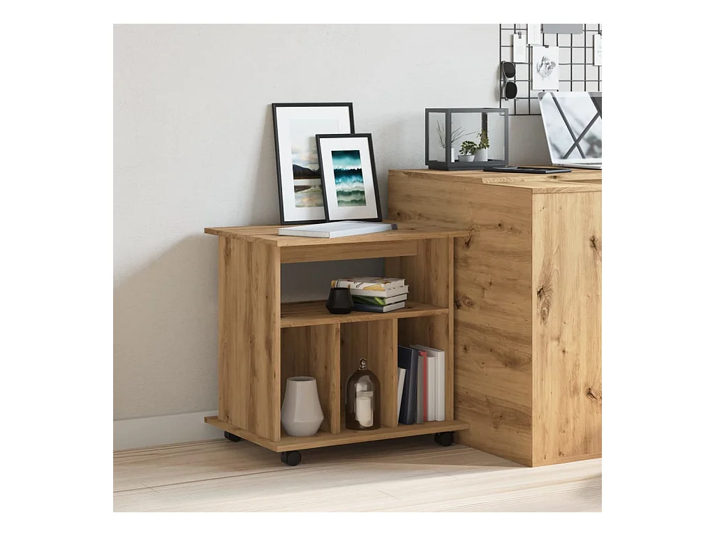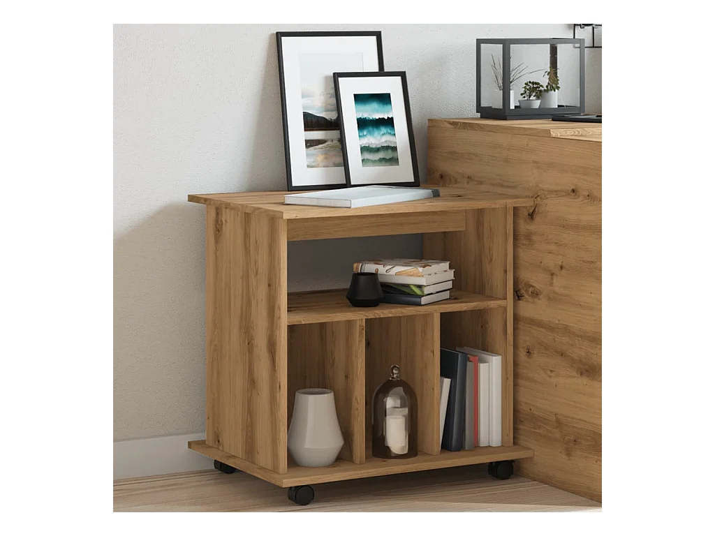 Mobiletto con ruote in rovere artigianale 60x45x60 cm in legno ingegnerizzato