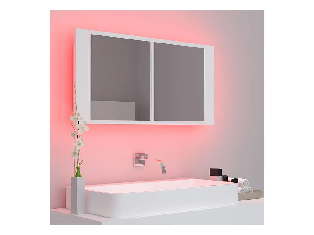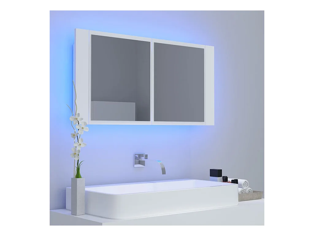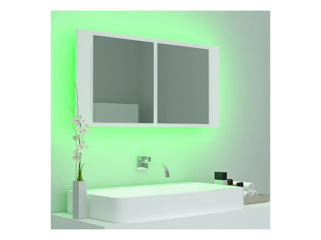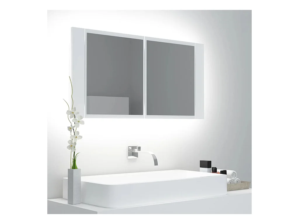Mobiletto da bagno con specchio LED bianco 90x12x45 cm in acrilico