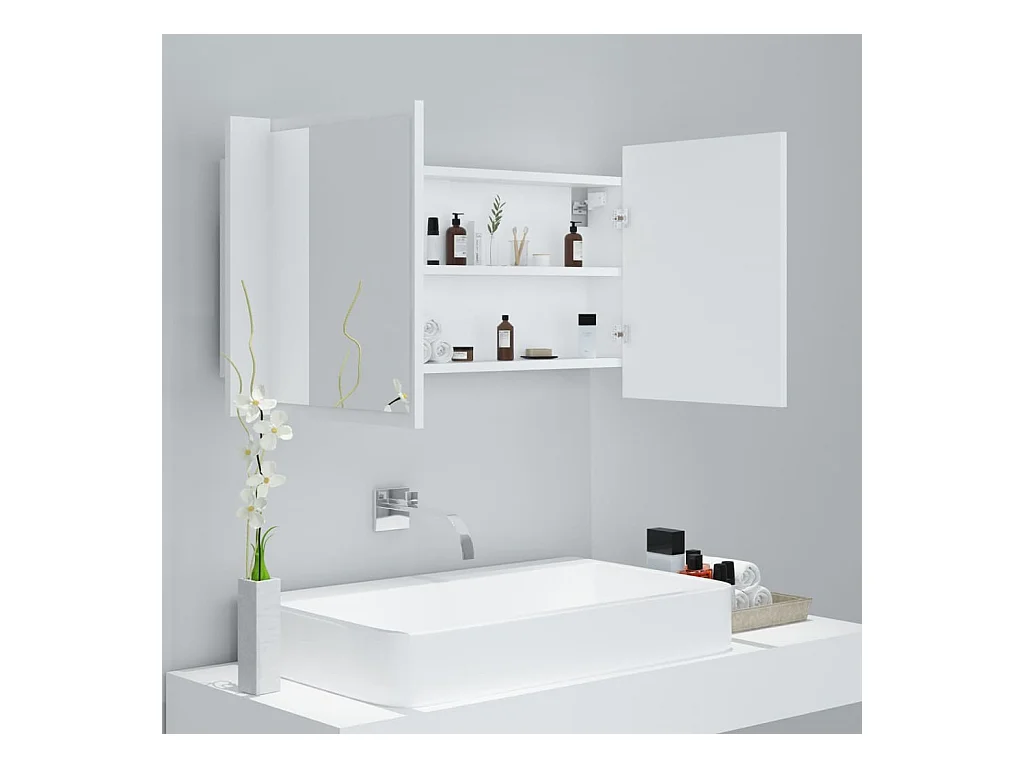 Mobiletto da bagno con specchio LED bianco 80x12x45 cm in acrilico