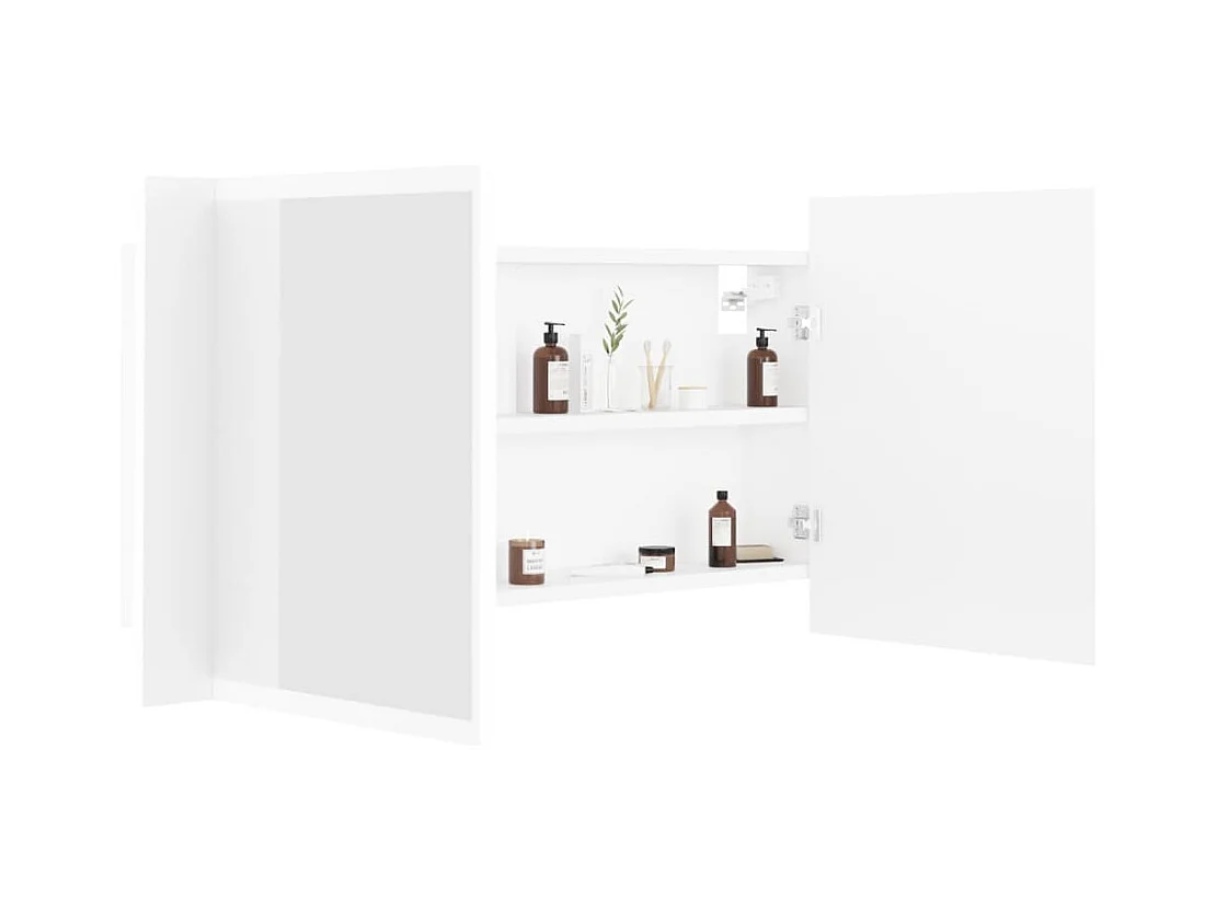 Mobiletto da bagno con specchio LED bianco 100x12x45 cm in acrilico