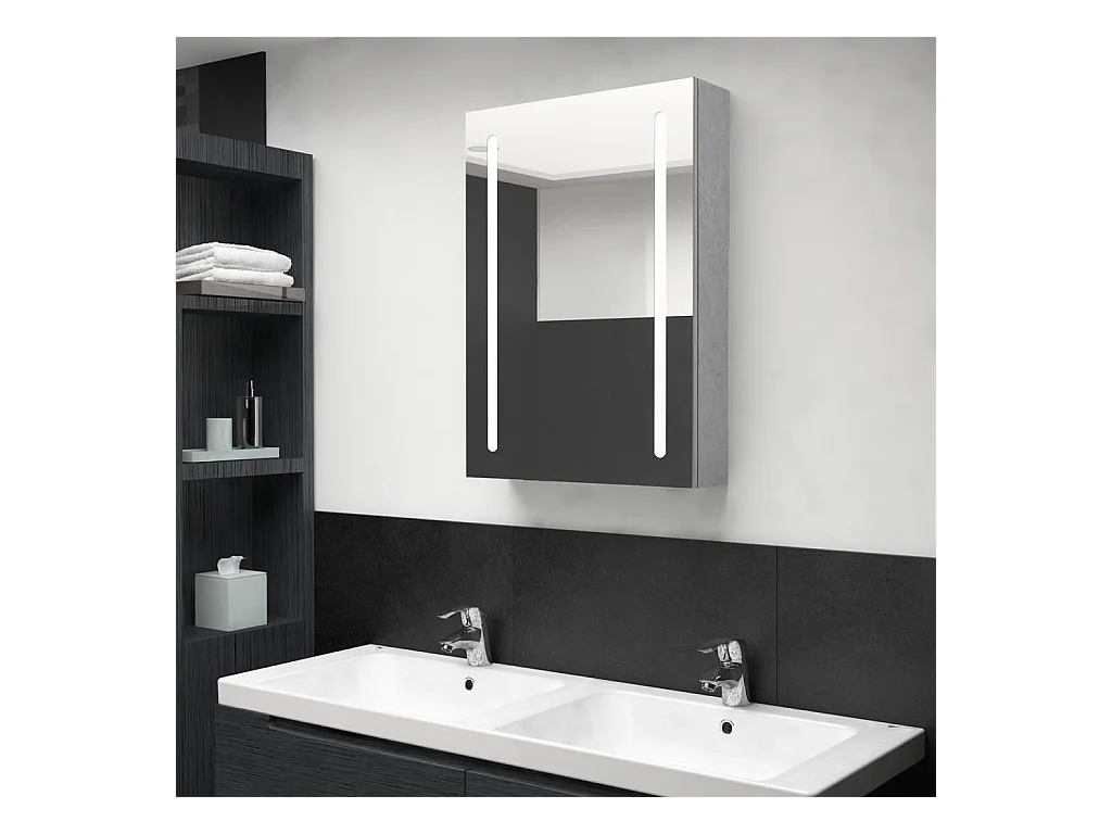 Mobiletto specchio da bagno con LED grigio 60x13x52 cm