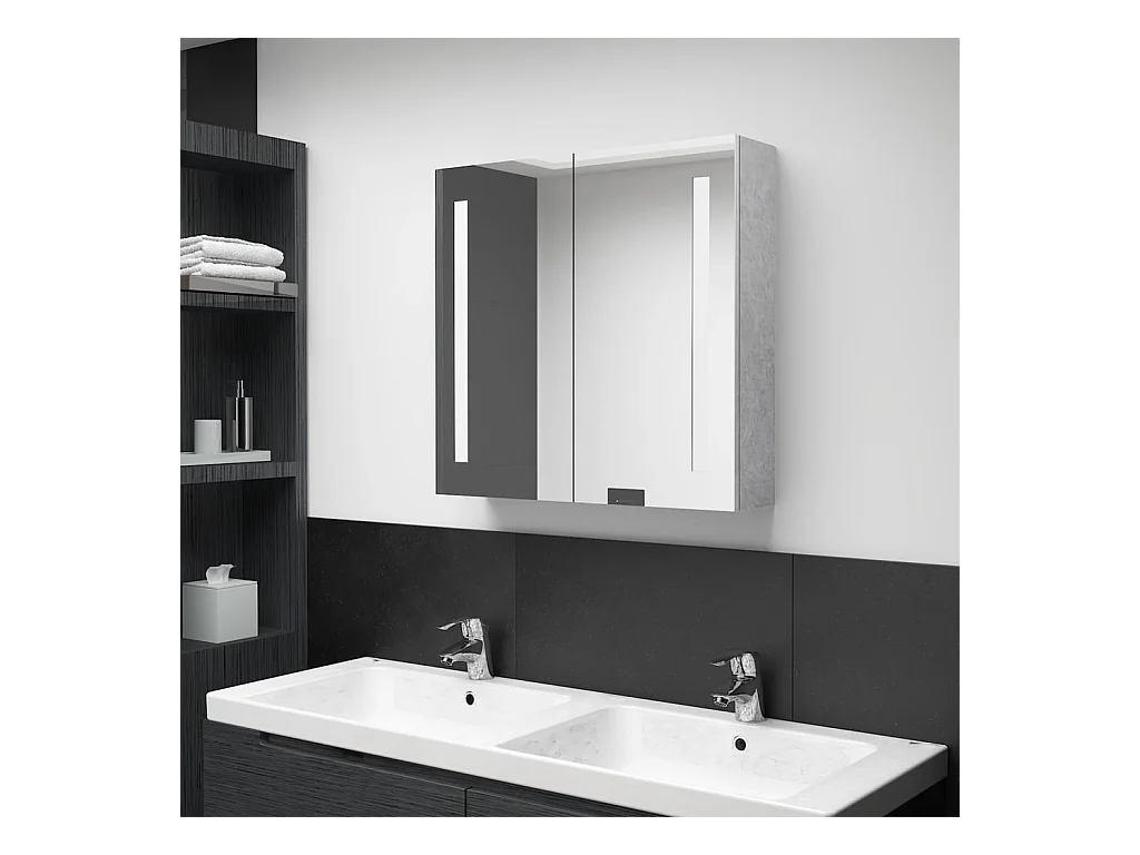 Mobiletto a specchio con LED Grigio cemento 70x16,5x60 cm