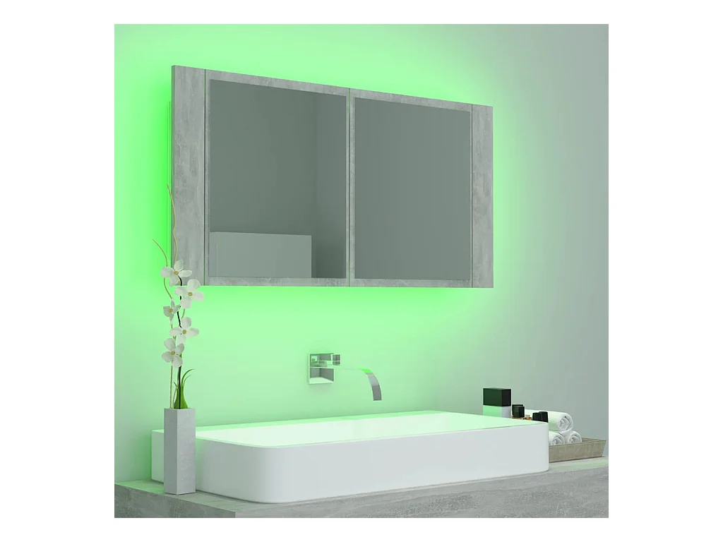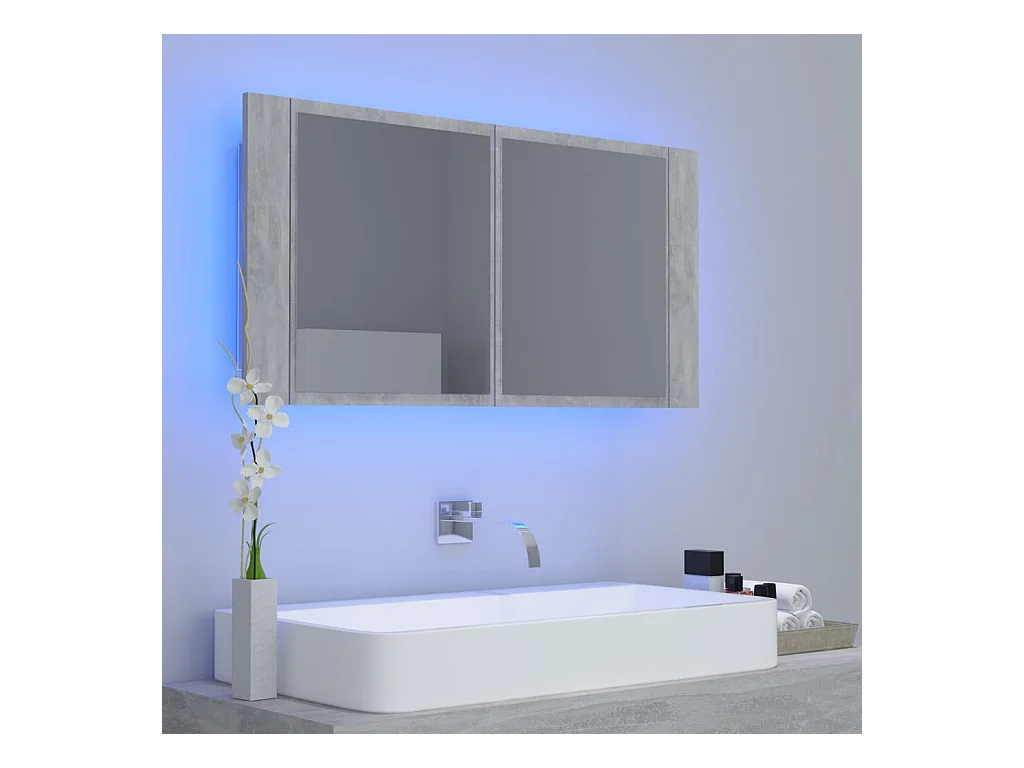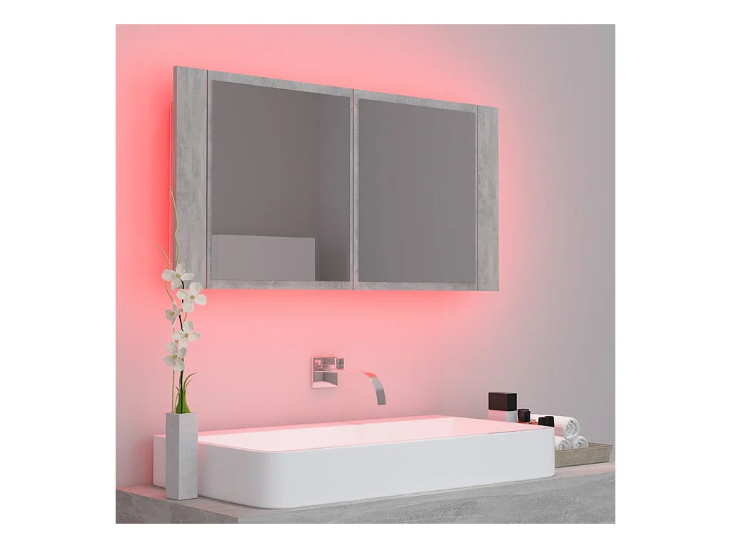Mobiletto da bagno con specchio LED in acrilico grigio cemento