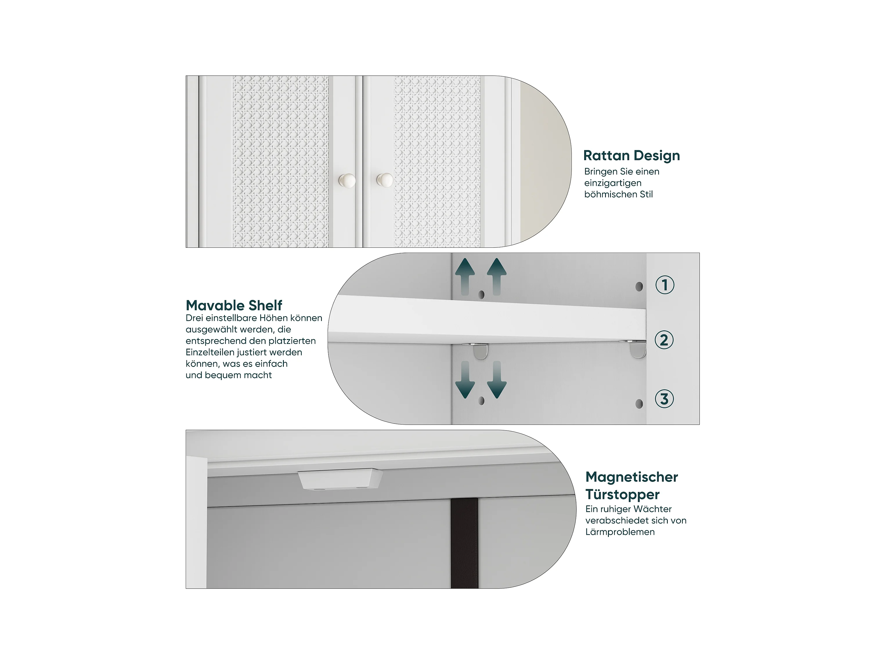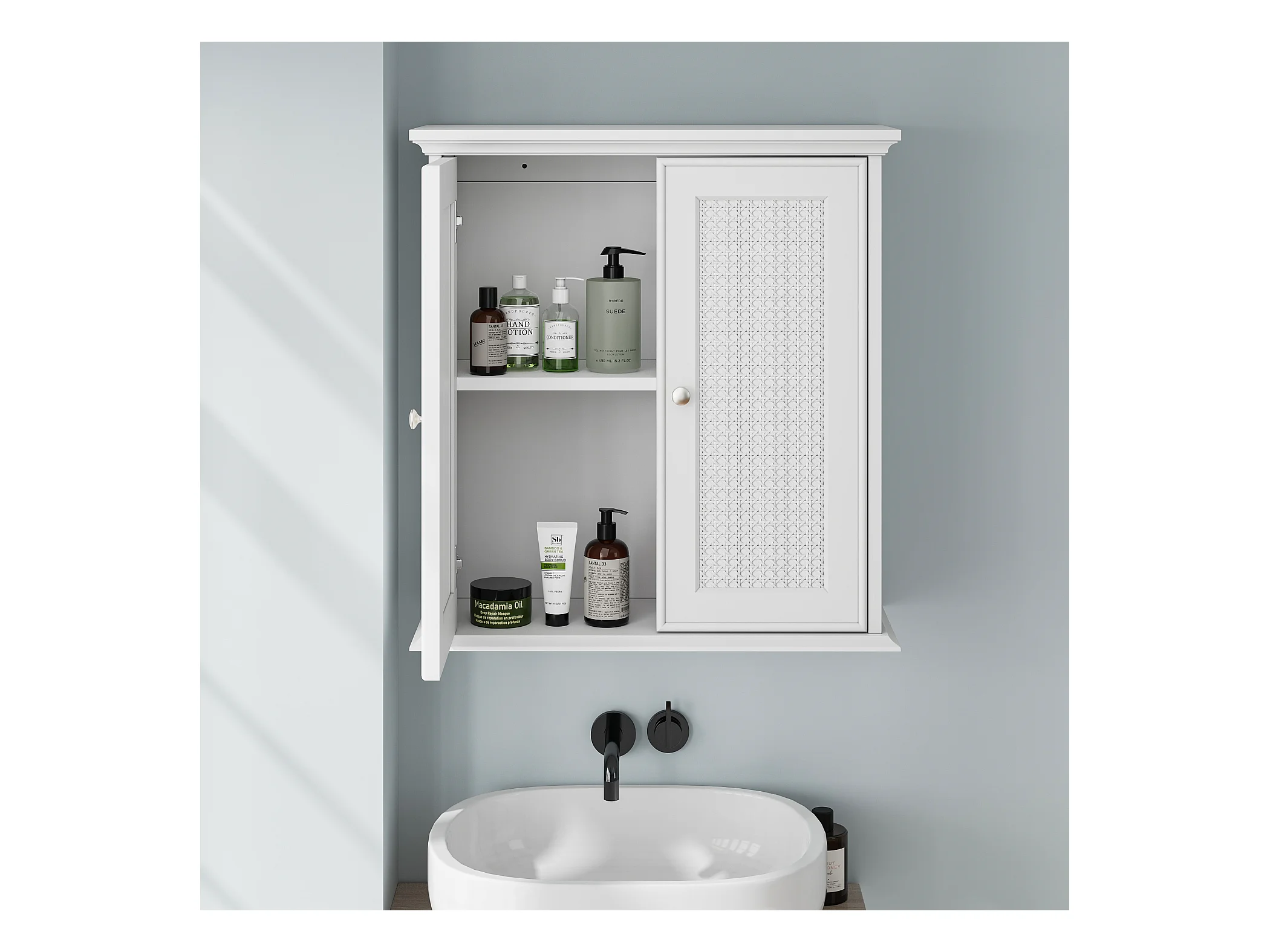 Mobiletto da bagno sospeso bianco con ante a cesto, armadietto per medicinali