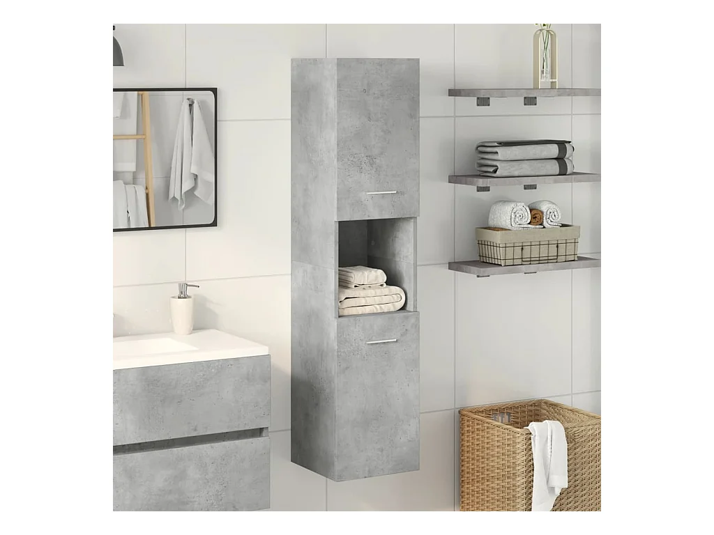 Armadietto Bagno Grigio Cemento 30x30x100 cm Legno Multistrato
