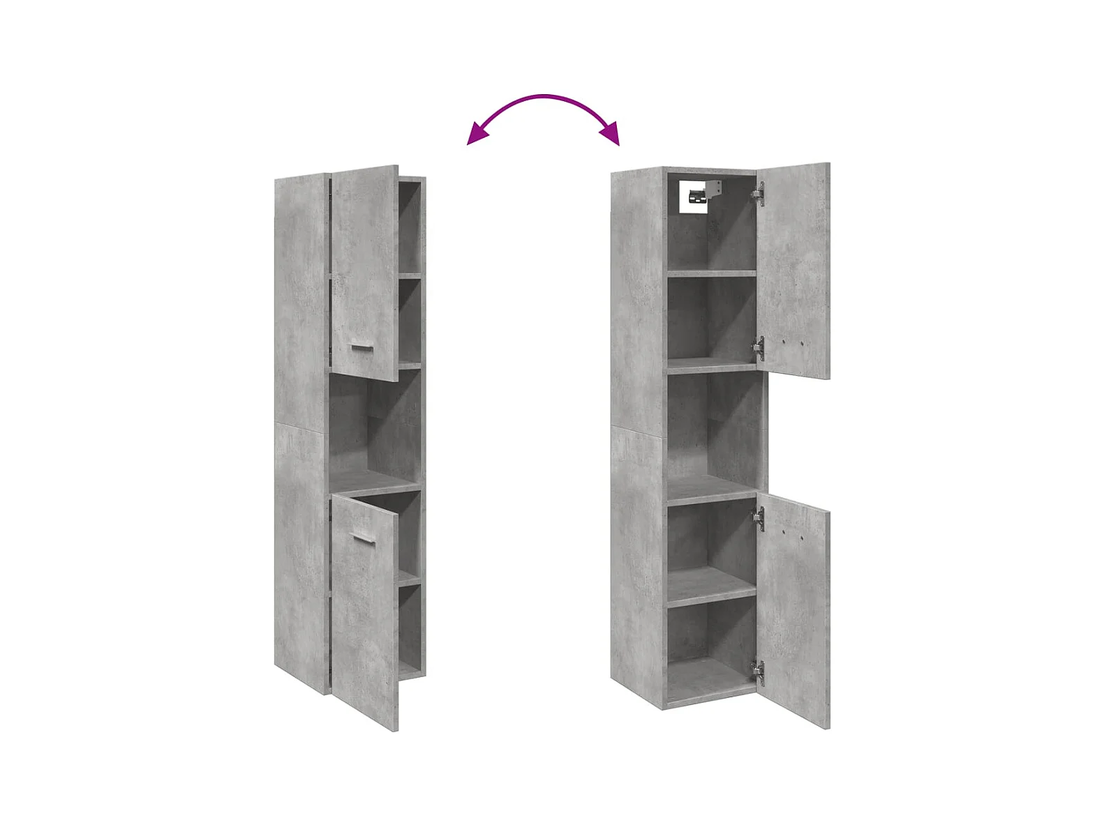 Armadietto Bagno Grigio Cemento 30x30x190 cm Legno Multistrato