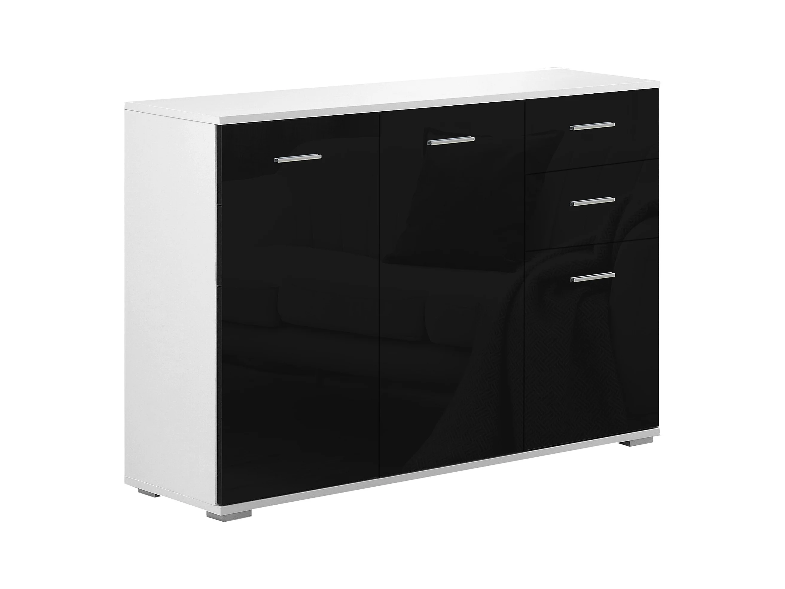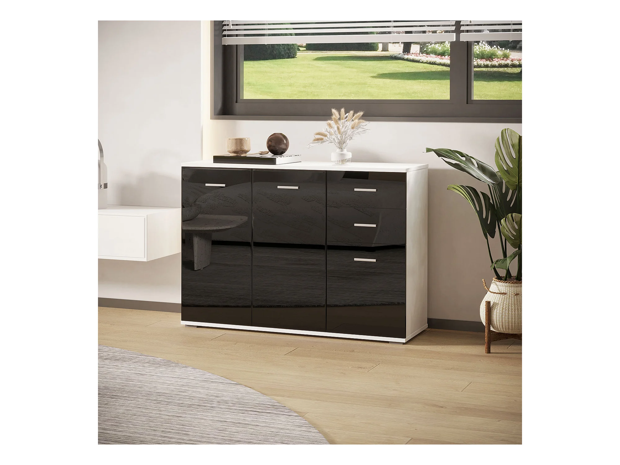 Mobiletto da ingresso con 3 ante e 2 cassetti nero lucido