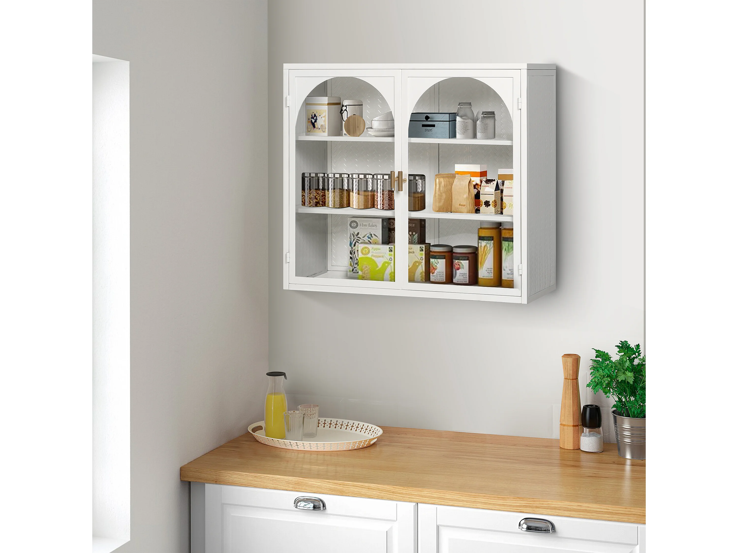 Mobiletto moderno a muro con ante in vetro - per cucina e bagno - 90 × 20 × 70 cm, Bianco