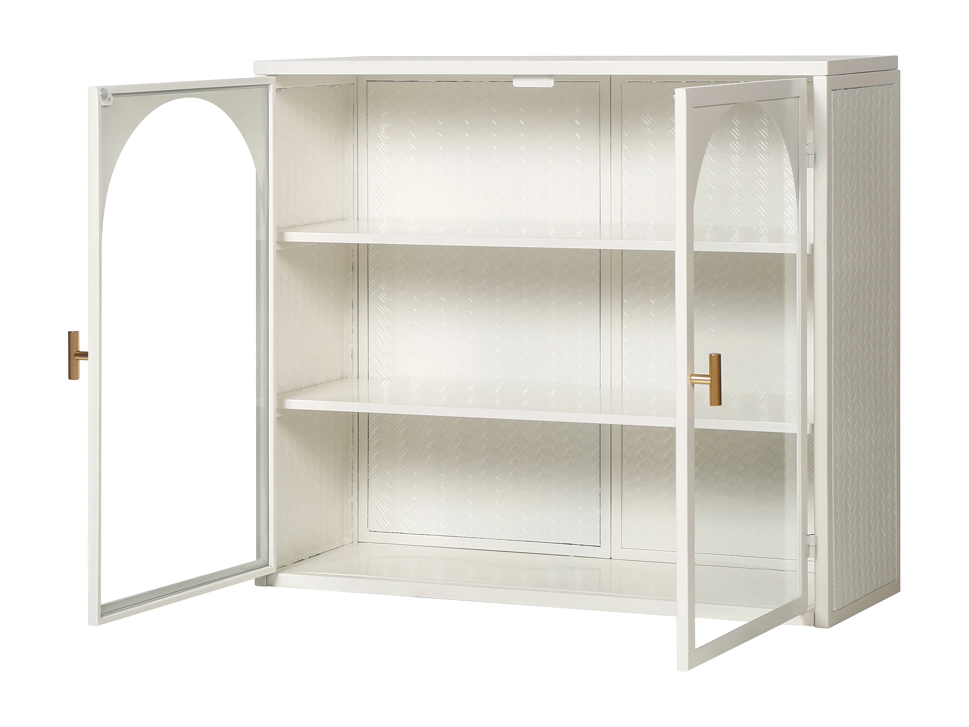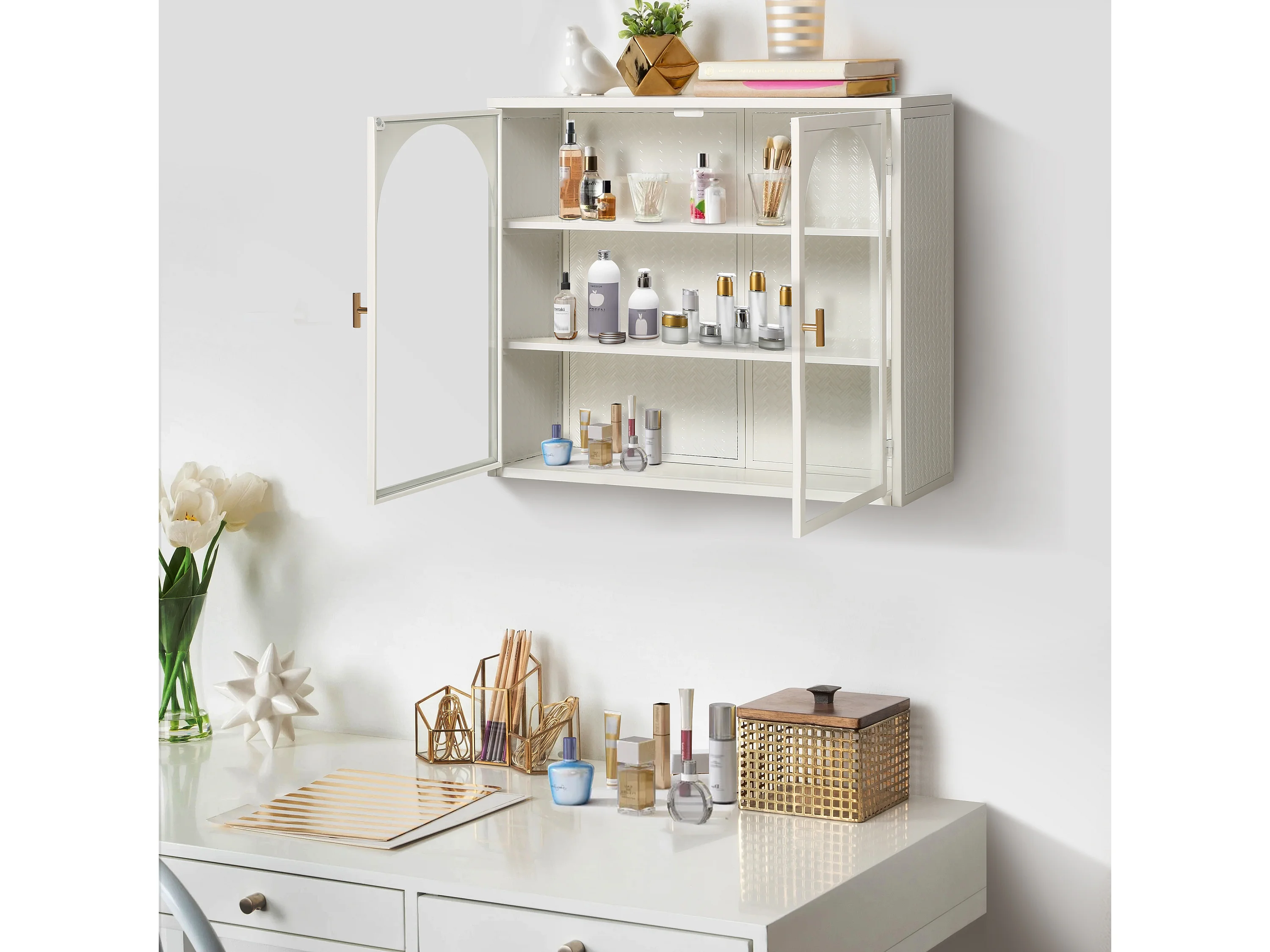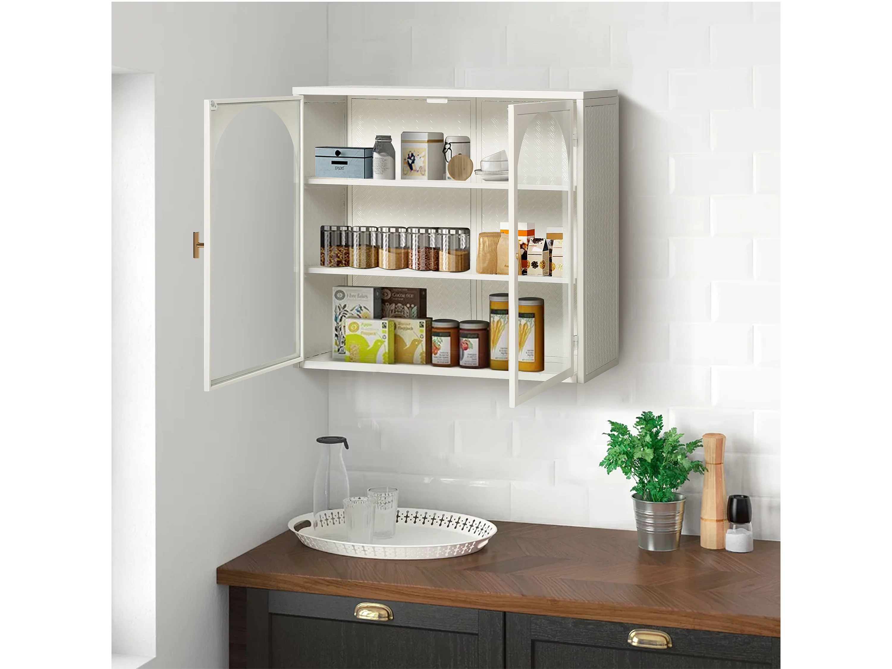 Mobiletto da parete in vetro da 70 cm con due ante, adatto per ingresso, soggiorno, bagno, motivo intrecciato, bianco