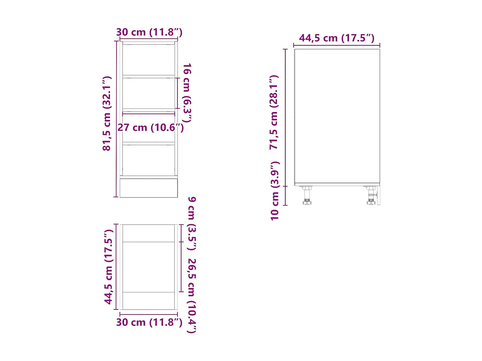Mobiletto da terra bianco 30x44,5x81,5 cm