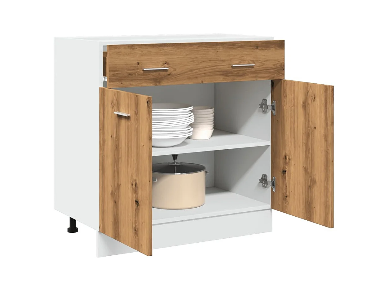 Mobiletto da terra in rovere fatto a mano con cassetto