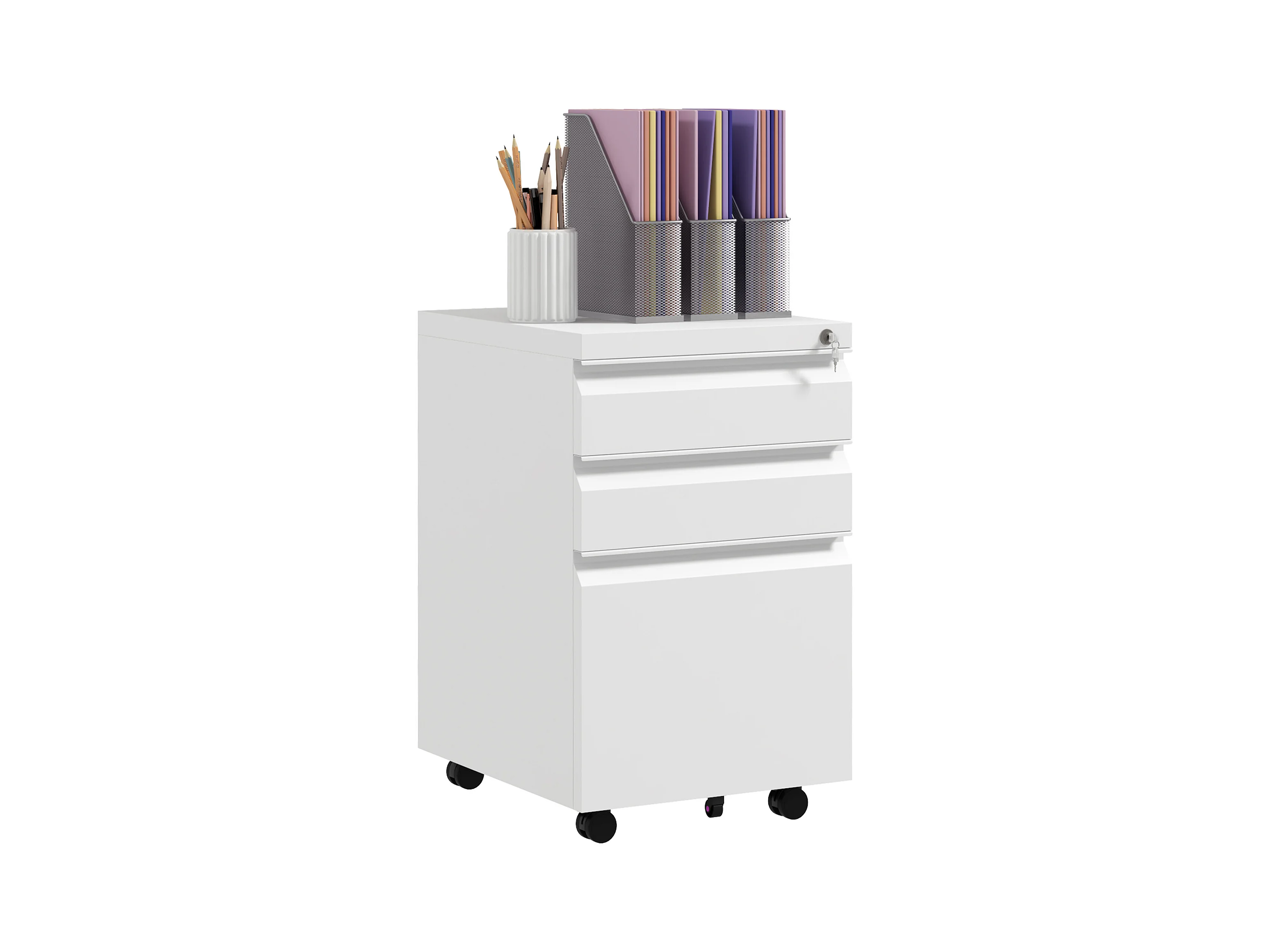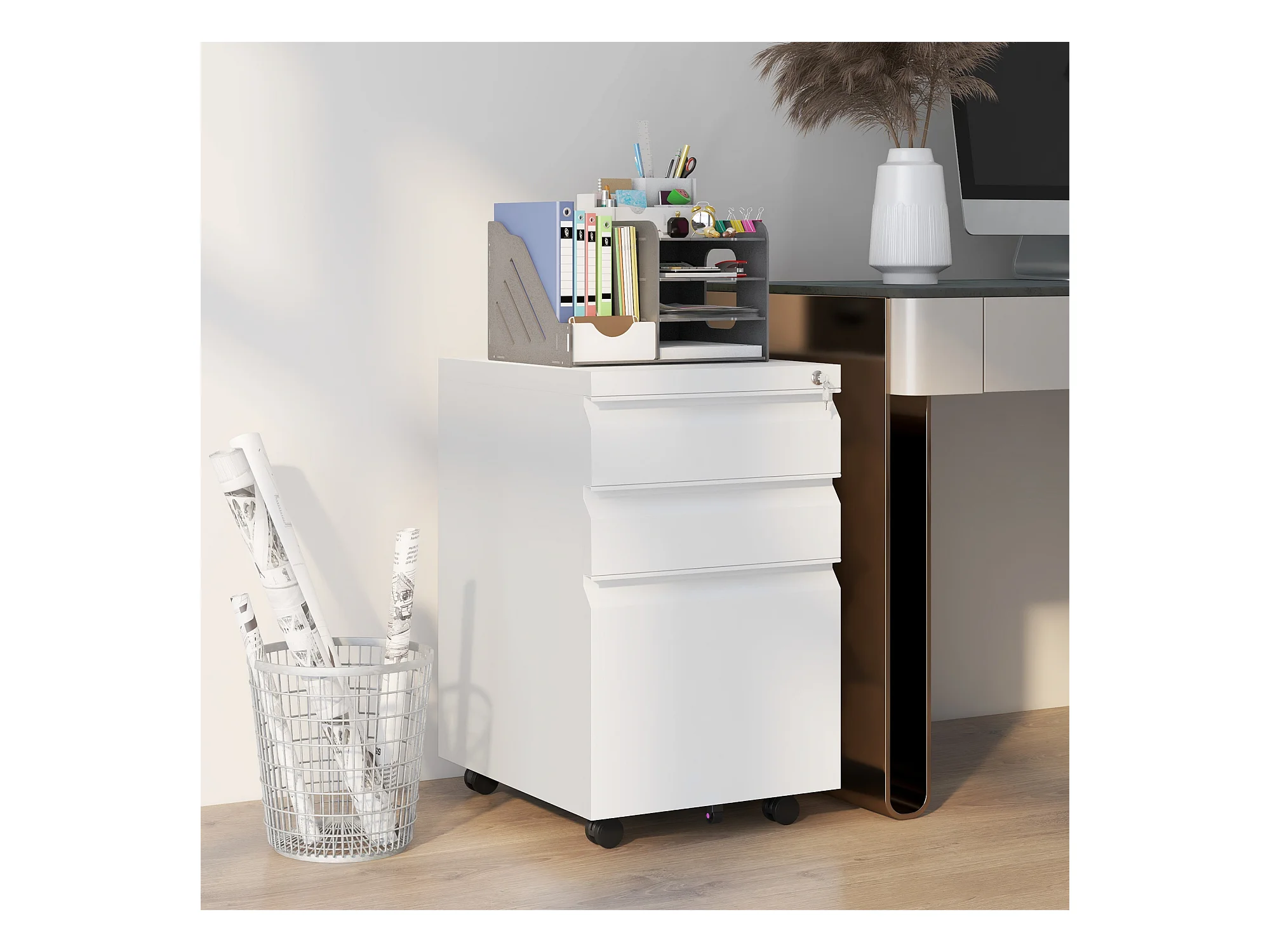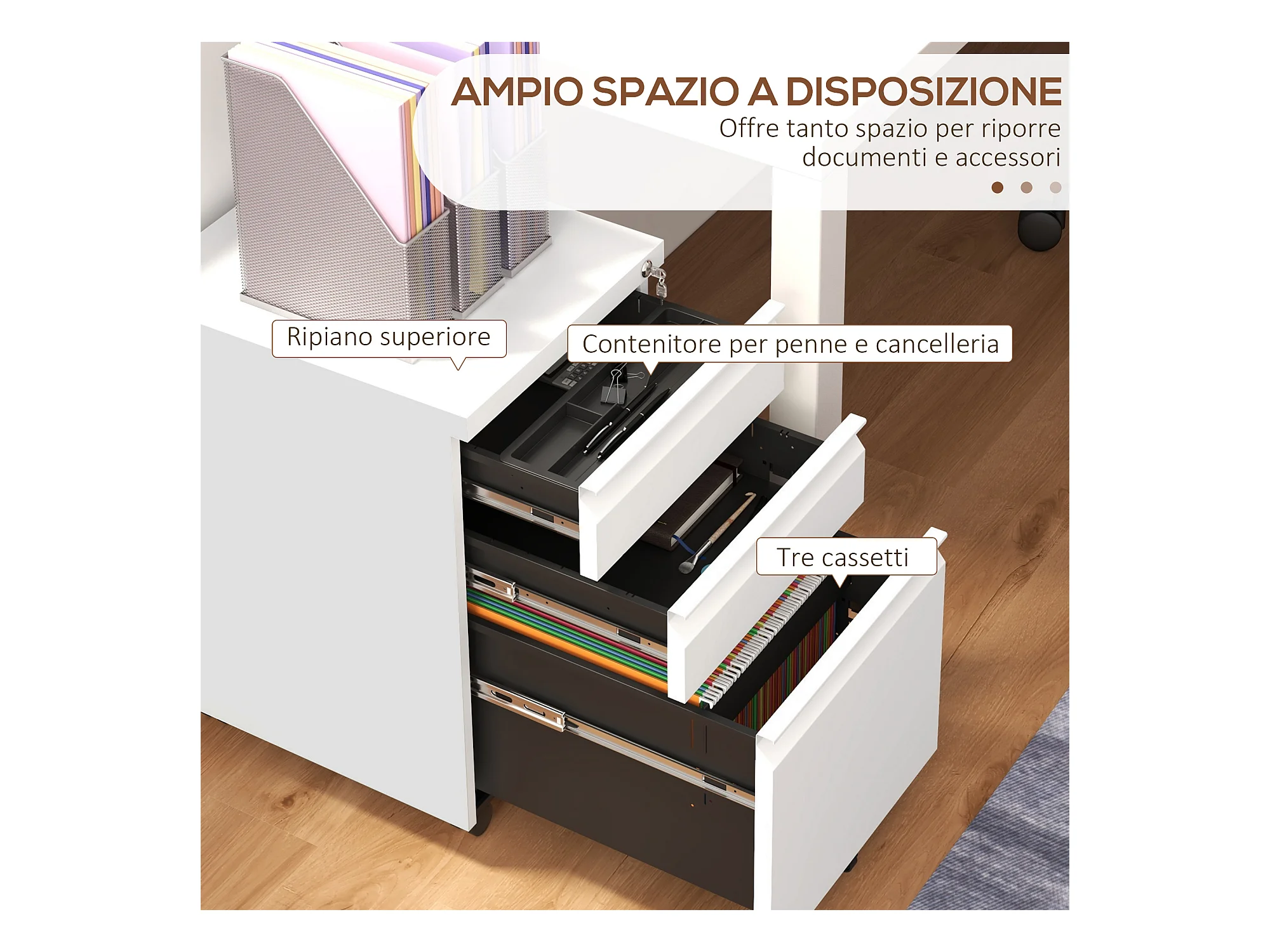Mobiletto da ufficio a 3 cassetti in acciaio bianco